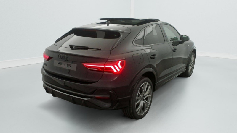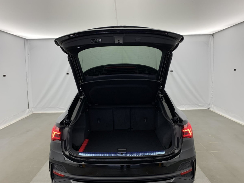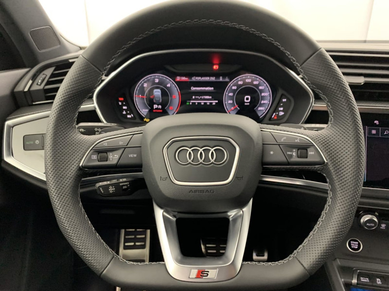 Pack Aluminium Intérieur / Audi Hold Assist / Appui lombaire à 4 axes pour les sièges AV: réglages électrique, horizontal et vertical / Applications décoratives en aluminium mat Brossé Foncé / Audi Smartphone Interface / Audi Connect Navigation et Divertissement Plus / Ecrous de roues antivol / Détecteur de pluie et de luminosité / Volant cuir Sport multifonctions Plus 3 branches avec méplat et palettes de commande au volant / Vitrage Privacy : lunette AR, vitres de portières AR et vitres latérales AR surteintées / Audi Drive Select / Clé confort incluant déverrouillage du coffre par capteur (sans Safelock) / Rétroviseur intérieur jour/nuit automatique sans encadrement / Sièges AV réglables manuellement Hauteur et positionnement en longueur, Inclinaison de dossier, Hauteur des appuie-tête et des ceintures / Fixation pour sièges enfants ISOFIX et Top Tether pour les sièges extérieurs AR / Kit réparation / Outillage de bord / Trousse de secours, triangle de présignalisation et 2 vestes de sécurité / Banquette AR avec porte-gobelet dans l'accoudoir de la place centrale / Hayon de coffre à ouverture et fermeture électrique / Audi Virtual cockpit plus / Accoudoir central coulissant en longueur, avec inclinaison réglable et vide-poches relevable / Assise et dossier de banquette AR, divisée, rabattable 40/20/40, Assise coulissante en longueur, Dossier avec inclinaison réglable / MMI Radio Plus avec MMI Touch / Boîtiers de rétroviseurs extérieurs couleur carrosserie / Pare-brise en verre acoustique avec verre feuilleté athermique / 2 prises USB AR (type-C) et prise 12V dans la console centrale AR / Avertisseur de franchissement de ligne et avertisseur de changement de voie / Détection de signalisation routière par caméra / Accoudoirs des contre-portes en matériaux synthétiques monopur 550 / Pack Eclairage d'ambiance plus : Eclairage dans la zone des pieds AV/AR Eclairage du porte-boissons AV Eclairage du compartiment de rangement sous le tableau de bord Choix parmi 30 couleurs Eclairage des seuils de portières AV Eclairage d'ambiance latéral de la console centrale AV Miroirs de courtoisie éclairés pour conducteur et passager AV Inscription éclairée sur le tableau de bord passager AV (anneaux Audi) / Pack S line extérieur : Diffuseur en Noir Titane mat Lamelles en Argent Aluminium mat Encadrement des prises d'air latérales AV en Gris Platine mat Becquet AV en peinture intégrale (couleur de la carrosserie) avec lame Gris Platine mat Grille de diffuseur Noir mat grenue Châssis Sport Emblème S line sur les ailes extérieures Barrette du diffuseur noir titane mat Calandre en noir titane, lames intérieures grises Moulures de seuil avec insert en aluminium à l'AV, éclairées, avec inscription S Protection du seuil de chargement en acier inoxydable Enjoliveurs de passage de roue et extensions de bas de caisse en peinture contrastée / Pack Esthétique Noir plus : Pare-chocs AV/AR Noirs Entourage des vitres latérales avec des baguettes enjoliveuses Noir Calandre Singleframe Noire Lames intérieurs de la calandre Singleframe nid d'abeille noires au lieu de grises Anneaux Audi et monogrammes en Noir Brillant / Ciel de pavillon en tissu Noir /