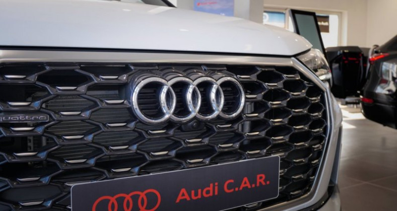 Cylindrée : 1968 cm3 Nb. Vitesse : 7 - Clé confort incluant déverrouillage du coffre par capteur (avec Safelock) + Alarme antivol - Accès et démarrage du véhicule mains libres (keyless access) - Alarme antivol - Déverrouillage du hayon via la touche coffre de la télécommande ou en simulant un mouvement de pied dans la zone à l'AR du véhicule (ouverture et fermeture) - Caméras périphériques 360° - Phares Matrix LED avec clignotants dynamiques AR - Vitrage Privacy : lunette AR, vitres de portières AR et vitres latérales AR surteintées - Lave-phares haute pression - Volant cuir Sport multifonctions Plus 3 branches avec méplat et palettes de commande au volant - Préparation pour crochet d'attelage - Rétroviseurs extérieurs réglables, dégivrants, rabattables électriquement avec fonction rabat automatique côté passager AV, marche AR enclenchée) et fonction jour/nuit automatique des 2 côtés - Applications décoratives en aluminium mat Brossé Foncé - Audi Connect Navigation et Divertissement Plus - Audi Pre Sense Basic Déploie automatiquement, lorsque nécessaire, des mesures préventives pour votre sécurité et celle de vos passagers, parmi lesquelles: Resserrement des ceintures de sécurité à l'avant afin de limiter tout déplacement des passagers vers l'avant ou les côtés, Activation des feux de détresse clignotants - Audi virtual cockpit - Climatisation automatique confort 2 zones - Jantes en aluminium coulé 18 5 branches en V 7Jx18, pneus 235/55 R18 - MMI Navigation plus avec MMI touch - Pack Aluminium Intérieur - Pack Brillance Extérieur - Phares à LED avec clignotants dynamiques AR - Préparation pour MMI Navigation plus - Rétroviseur intérieur jour/nuit automatique sans encadrement - Rétroviseurs extérieurs réglables, dégivrants et rabattables électriquement avec fonction rabat automatique - Volant cuir multifonctions Plus 3 branches - 2 prises USB AR (type-C) et prise 12V dans la console centrale AR - Accoudoir central coulissant en longueur, avec inclinaison réglable et vide-poches relevable - Accoudoirs des contre-portes en matériaux synthétiques monopur 550 - Affichage de contrôle de pression des pneus - Appel d'urgence Audi connect - Appui lombaire à 4 axes pour les sièges AV: réglages électrique, horizontal et vertical - Assise et dossier de banquette AR, divisée, rabattable 40/20/40, Assise coulissante en longueur, Dossier avec inclinaison réglable - Audi Connect sécurité et assistance en ligne - Audi Drive Select - Audi Hold Assist - Audi Parking System Plus - Audi Pre Sense front Détecte la zone située devant le véhicule et avertit le conducteur par des signaux visuels et sonores en cas de potentielle situation dangereuse avec des véhicules qui précèdent ou qui sont arrêtés. Le système avertit alors le conducteur par un signal sonore et visuel. Simultanément, le système prépare un éventuel freinage complet, et engage un freinage d'urgence automatisé, dans le cas où celui-ci s'avérerait nécessaire - Audi Smartphone Interface - Avertisseur de franchissement de ligne et avertisseur de changement de voie - Banquette AR avec porte-gobelet dans l'accoudoir de la place centrale - Boîtiers de rétroviseurs extérieurs couleur carrosserie - Caméra de recul - Ciel de pavillon en tissu Noir - Clé confort incluant déverrouillage du coffre par capteur (sans Safelock) - Clé à fréquence radio - Câbles de recharge pour téléphone portable compatibles Apple et Android - Direction assistée électromécanique, asservie à la vitesse - Direction progressive - Détecteur de pluie et de luminosité - Détection de signalisation routière par caméra - Eclairage intérieur - Ecrous de roues antivol - Fixation pour sièges enfants ISOFIX et Top Tether pour les sièges extérieurs AR - Hayon de coffre à ouverture et fermeture électrique - Interface Bluetooth - Interface USB pour chargement d'appareils externes - Kit réparation - MMI Radio Plus avec MMI Touch - Outillage de bord - Pare-brise en verre acoustique avec verre feuilleté athermique - Réception radio numérique (DAB) - Régulateur de vitesse - Sièges AV réglables manuellement Hauteur et positionnement en longueur, Inclinaison de dossier, Hauteur des appuie-tête et des ceintures - Sièges AV sport - Suspensions Sport - Trousse de secours, triangle de présignalisation et 2 vestes de sécurité