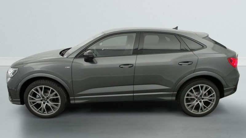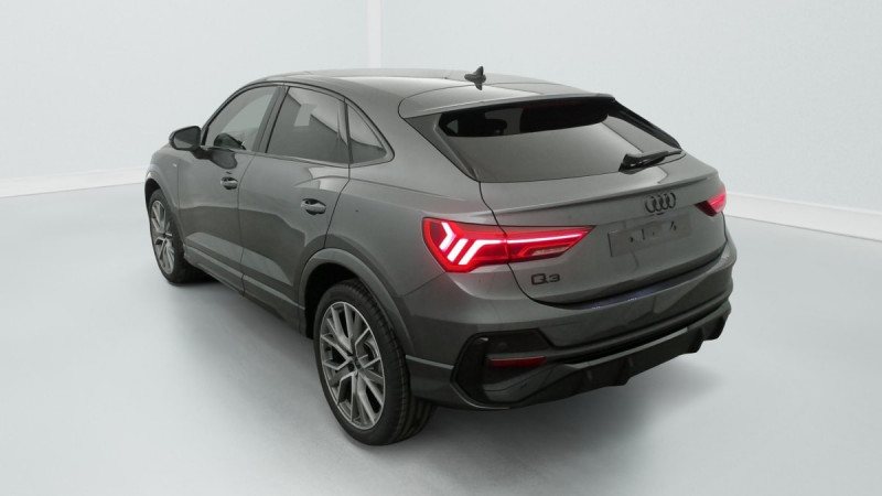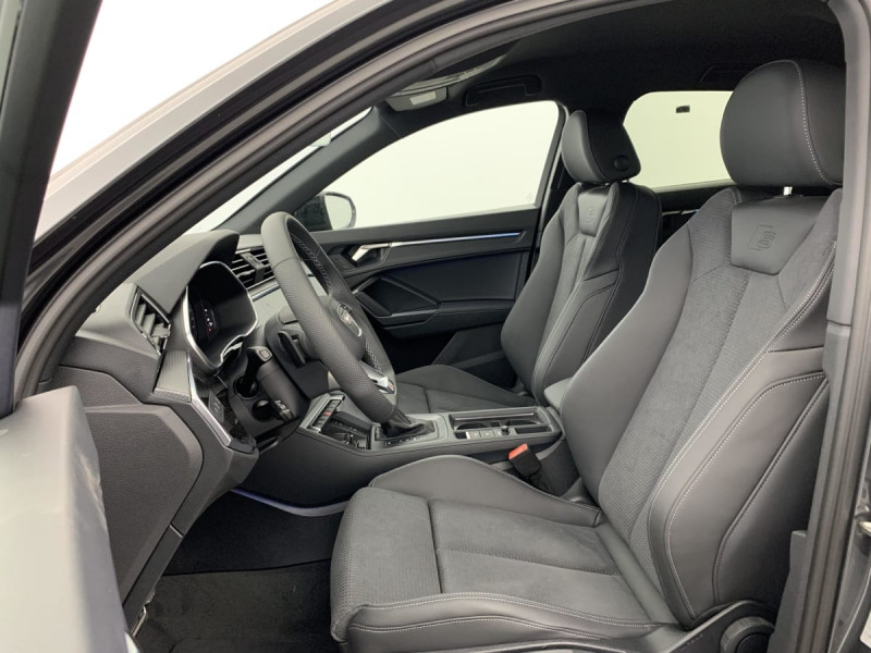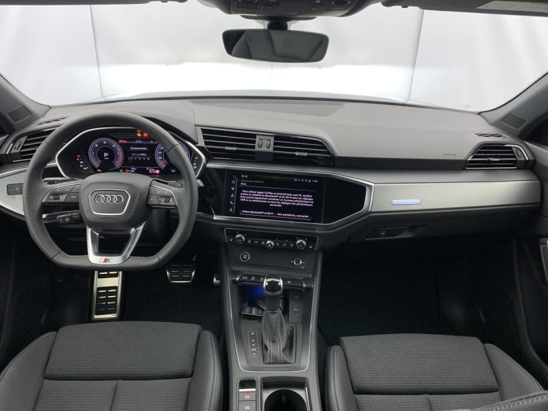 Interface Bluetooth / Pack Aluminium Intérieur / Audi Hold Assist / Appui lombaire à 4 axes pour les sièges AV: réglages électrique, horizontal et vertical / Applications décoratives en aluminium mat Brossé Foncé / Audi Smartphone Interface / Audi Connect Navigation et Divertissement Plus / Détecteur de pluie et de luminosité / Volant cuir Sport multifonctions Plus 3 branches avec méplat et palettes de commande au volant / Vitrage Privacy : lunette AR, vitres de portières AR et vitres latérales AR surteintées / Audi Drive Select / Clé confort incluant déverrouillage du coffre par capteur (sans Safelock) / Rétroviseur intérieur jour/nuit automatique sans encadrement / Sièges AV réglables manuellement: Hauteur et positionnement en longueur, Inclinaison de dossier, Hauteur des appuie-tête et des ceintures / Fixation pour sièges enfants ISOFIX et Top Tether pour les sièges extérieurs AR / Kit réparation / Outillage de bord / Banquette AR avec porte-gobelet dans l'accoudoir de la place centrale / Audi Connect sécurité et assistance en ligne / Hayon de coffre à ouverture et fermeture électrique / Interface USB pour chargement d'appareils externes / Audi Virtual cockpit plus / Accoudoir central coulissant en longueur, avec inclinaison réglable et vide-poches relevable / Assise et dossier de banquette AR, divisée, rabattable 40/20/40, Assise coulissante en longueur, Dossier avec inclinaison réglable / MMI Radio Plus avec MMI Touch / Pare-brise en verre acoustique avec verre feuilleté athermique / 2 prises USB AR (type-C) et prise 12V dans la console centrale AR / Avertisseur de franchissement de ligne et avertisseur de changement de voie / Câbles de recharge pour téléphone portable compatibles Apple et Android / Audi Pre Sense Basic Déploie automatiquement, lorsque nécessaire, des mesures préventives pour votre sécurité et celle de vos passagers, parmi lesquelles: Resserrement des ceintures de sécuritéà l'avant afin de limiter tout déplacement des passagers vers l'avant ou les côtés, Activation des feux de détresse clignotants / Détection de signalisation routière par caméra / Accoudoirs des contre-portes en matériaux synthétiques monopur 550 / Pack Eclairage d'ambiance plus En plus du Pack éclairage d'ambiance: - Choix parmi 30 couleurs - Inscription éclairée sur le tableau de bord passager AV (anneaux Audi sur traction ou quattro) : Eclairage dans la zone des pieds AV/AR Eclairage du porte-boissons AV Eclairage du compartiment de rangement sous le tableau de bord Choix parmi 30 couleurs Eclairage des seuils de portières AV Eclairage d'ambiance latéral de la console centrale AV Miroirs de courtoisie éclairés pour conducteur et passager AV Inscription éclairée sur le tableau de bord passager AV (anneaux Audi) / Pack S line extérieur - Pare-chocs S line, enjoliveurs de passage de roue et extensions de bas de caisse en peinture contrastée - Calandre en noir titane, lames intérieures grises - Lamelles en argent aluminium mat - Encadrement des entrées d'air latérales à l'AV en gris platine mat - Becquet AV en peinture intégrale (couleur de la carrosserie) avec lame gris platine mat - Diffuseur en noir titane mat et grille de diffuseur noir mat grenue - Barrette du diffuseur : noir titane mat : Diffuseur en Noir Titane mat Pare-chocs S line dans une peinture contrastée (Gris Manhattan) Lamelles en Argent Aluminium mat Encadrement des prises d'air latérales AV en Gris Platine mat Becquet AV en peinture intégrale (couleur de la carrosserie) avec lame Gris Platine mat Grille de diffuseur Noir mat grenue Châssis Sport Emblème S line sur les ailes extérieures Barrette du diffuseur noir titane mat Calandre en noir titane, lames intérieures grises Moulures de seuil avec insert en aluminium à l'AV, éclairées, avec inscription S Protection du seuil de chargement en acier inoxydable Enjoliveurs de passage de roue et extensions de bas de caisse en peinture contrastée / Pack S line intérieur : Pédalier et repose-pieds en acier inoxydable Sièges AV sport Frein à main avec surpiqûres contrastées, couleur assortie à celle de l'habitacle Estampillage S line sur le dossier des sièges AV / Pack Esthétique Noir plus - Entourage des vitres latérales avec des baguettes enjoliveuses noir - Calandre Singleframe noire - Pare-chocs AV et AR noirs - Les lames intérieurs de la calandre Singleframe nid d'abeille deviennent noires - Anneaux Audi et monogrammes en Noir brillant : Pare-chocs AV/AR Noirs Entourage des vitres latérales avec des baguettes enjoliveuses Noir Calandre Singleframe Noire Lames intérieurs de la calandre Singleframe nid d'abeille noires au lieu de grises Anneaux Audi et monogrammes en Noir Brillant / Ciel de pavillon en tissu Noir /
