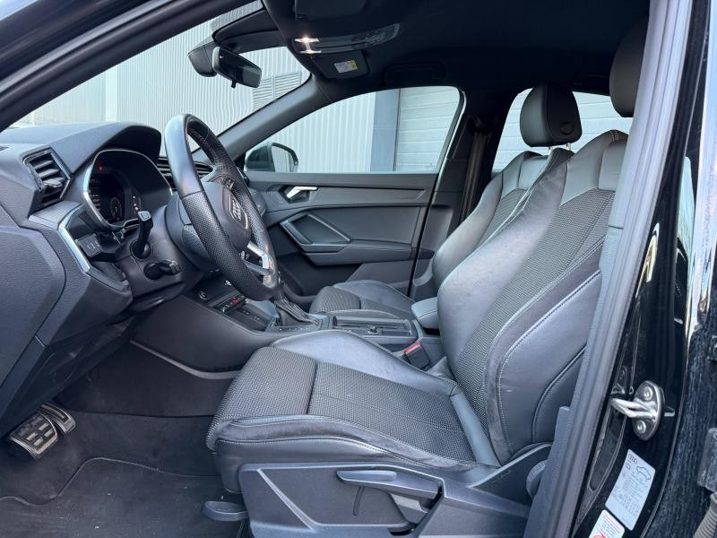 6 Haut parleurs / Bacs de portes avant / Borne Wi-Fi / Ceintures avant ajustables en hauteur / Coffre assistéélectriquement / Commandes vocales / Compte tours / Diffuseur AR noir / Eclairage statique d'intersection / Filtre à Pollen / Inserts de porte métal / Inserts de tableau de bord métal / Lampe de coffre / Lampes de lecture à l'arrière / Lampes de lecture à l'avant / Ouverture des vitres séquentielle / Pédalier sport / Phares avant LED / Poignées ton carrosserie / Porte-gobelets arrière / Porte-gobelets avant / Prise auxiliaire de connexion audio / Rétroviseur intérieur électrochrome / Rétroviseurs ext. indexés à la marche AR / Siège cond. avec réglage lombaire électr / Siège passager avec réglage lombaire / Tablette cache bagages / Température extérieure / Tissu/Similicuir monopur 550 Noir / TMC / Audi Connect Navigation et Divertissement Plus (option inclus) / Audi Park Assist (option inclus) / Audi Smartphone Interface (option inclus) / Audi Virtual cockpit plus (option inclus) / Caméra de recul (option inclus) / Clé confort incluant déverrouillage du coffre par capteur (option inclus) / Pare-chocs S line dans une peinture contrastée (Gris Manhattan) (option inclus) / Peinture métallisée Noir Mythic (option inclus) / Sièges AV chauffants (option inclus) / Sièges AV sport (option inclus) /