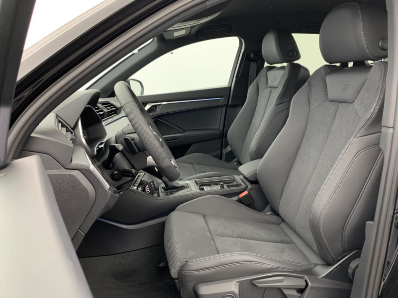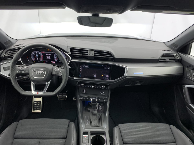 Interface Bluetooth / Pack Aluminium Intérieur / Audi Hold Assist / Appui lombaire à 4 axes pour les sièges AV: réglages électrique, horizontal et vertical / Applications décoratives en aluminium mat Brossé Foncé / Audi Smartphone Interface / Audi Connect Navigation et Divertissement Plus / Détecteur de pluie et de luminosité / Volant cuir Sport multifonctions Plus 3 branches avec méplat et palettes de commande au volant / Vitrage Privacy : lunette AR, vitres de portières AR et vitres latérales AR surteintées / Audi Drive Select / Clé confort incluant déverrouillage du coffre par capteur (sans Safelock) / Rétroviseur intérieur jour/nuit automatique sans encadrement / Sièges AV réglables manuellement: Hauteur et positionnement en longueur, Inclinaison de dossier, Hauteur des appuie-tête et des ceintures / Fixation pour sièges enfants ISOFIX et Top Tether pour les sièges extérieurs AR / Kit réparation / Outillage de bord / Banquette AR avec porte-gobelet dans l'accoudoir de la place centrale / Audi Connect sécurité et assistance en ligne / Hayon de coffre à ouverture et fermeture électrique / Interface USB pour chargement d'appareils externes / Audi Virtual cockpit plus / Accoudoir central coulissant en longueur, avec inclinaison réglable et vide-poches relevable / Assise et dossier de banquette AR, divisée, rabattable 40/20/40, Assise coulissante en longueur, Dossier avec inclinaison réglable / MMI Radio Plus avec MMI Touch / Pare-brise en verre acoustique avec verre feuilleté athermique / 2 prises USB AR (type-C) et prise 12V dans la console centrale AR / Avertisseur de franchissement de ligne et avertisseur de changement de voie / Câbles de recharge pour téléphone portable compatibles Apple et Android / Audi Pre Sense Basic Déploie automatiquement, lorsque nécessaire, des mesures préventives pour votre sécurité et celle de vos passagers, parmi lesquelles: Resserrement des ceintures de sécuritéà l'avant afin de limiter tout déplacement des passagers vers l'avant ou les côtés, Activation des feux de détresse clignotants / Détection de signalisation routière par caméra / Accoudoirs des contre-portes en matériaux synthétiques monopur 550 / Pack Eclairage d'ambiance plus En plus du Pack éclairage d'ambiance: - Choix parmi 30 couleurs - Inscription éclairée sur le tableau de bord passager AV (anneaux Audi sur traction ou quattro) : Eclairage dans la zone des pieds AV/AR Eclairage du porte-boissons AV Eclairage du compartiment de rangement sous le tableau de bord Choix parmi 30 couleurs Eclairage des seuils de portières AV Eclairage d'ambiance latéral de la console centrale AV Miroirs de courtoisie éclairés pour conducteur et passager AV Inscription éclairée sur le tableau de bord passager AV (anneaux Audi) / Pack S line extérieur - Pare-chocs S line, enjoliveurs de passage de roue et extensions de bas de caisse en peinture contrastée - Calandre en noir titane, lames intérieures grises - Lamelles en argent aluminium mat - Encadrement des entrées d'air latérales à l'AV en gris platine mat - Becquet AV en peinture intégrale (couleur de la carrosserie) avec lame gris platine mat - Diffuseur en noir titane mat et grille de diffuseur noir mat grenue - Barrette du diffuseur : noir titane mat : Diffuseur en Noir Titane mat Pare-chocs S line dans une peinture contrastée (Gris Manhattan) Lamelles en Argent Aluminium mat Encadrement des prises d'air latérales AV en Gris Platine mat Becquet AV en peinture intégrale (couleur de la carrosserie) avec lame Gris Platine mat Grille de diffuseur Noir mat grenue Châssis Sport Emblème S line sur les ailes extérieures Barrette du diffuseur noir titane mat Calandre en noir titane, lames intérieures grises Moulures de seuil avec insert en aluminium à l'AV, éclairées, avec inscription S Protection du seuil de chargement en acier inoxydable Enjoliveurs de passage de roue et extensions de bas de caisse en peinture contrastée / Pack S line intérieur : Pédalier et repose-pieds en acier inoxydable Sièges AV sport Frein à main avec surpiqûres contrastées, couleur assortie à celle de l'habitacle Estampillage S line sur le dossier des sièges AV / Pack Esthétique Noir plus - Entourage des vitres latérales avec des baguettes enjoliveuses noir - Calandre Singleframe noire - Pare-chocs AV et AR noirs - Les lames intérieurs de la calandre Singleframe nid d'abeille deviennent noires - Anneaux Audi et monogrammes en Noir brillant : Pare-chocs AV/AR Noirs Entourage des vitres latérales avec des baguettes enjoliveuses Noir Calandre Singleframe Noire Lames intérieurs de la calandre Singleframe nid d'abeille noires au lieu de grises Anneaux Audi et monogrammes en Noir Brillant / Ciel de pavillon en tissu Noir /