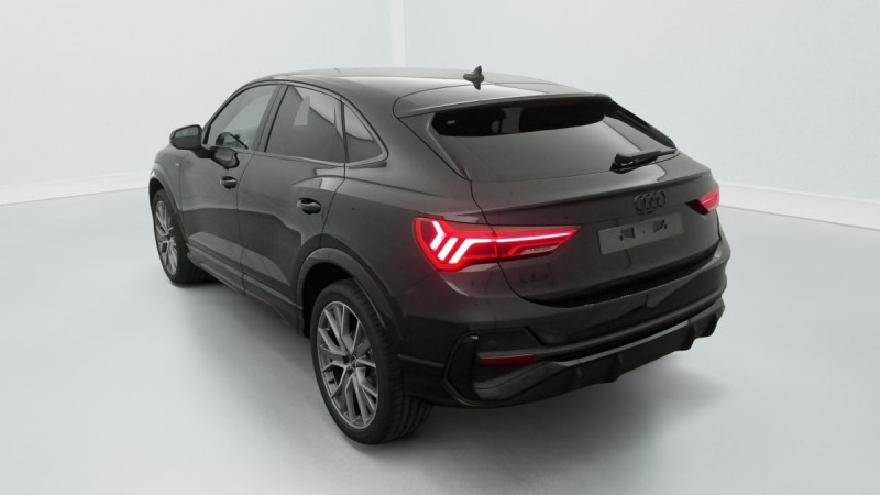 Interface Bluetooth / Pack Aluminium Intérieur / Audi Hold Assist / Appui lombaire à 4 axes pour les sièges AV: réglages électrique, horizontal et vertical / Applications décoratives en aluminium mat Brossé Foncé / Audi Smartphone Interface / Audi Connect Navigation et Divertissement Plus / Détecteur de pluie et de luminosité / Volant cuir Sport multifonctions Plus 3 branches avec méplat et palettes de commande au volant / Vitrage Privacy : lunette AR, vitres de portières AR et vitres latérales AR surteintées / Audi Drive Select / Clé confort incluant déverrouillage du coffre par capteur (sans Safelock) / Rétroviseur intérieur jour/nuit automatique sans encadrement / Sièges AV réglables manuellement: Hauteur et positionnement en longueur, Inclinaison de dossier, Hauteur des appuie-tête et des ceintures / Fixation pour sièges enfants ISOFIX et Top Tether pour les sièges extérieurs AR / Kit réparation / Outillage de bord / Banquette AR avec porte-gobelet dans l'accoudoir de la place centrale / Audi Connect sécurité et assistance en ligne / Hayon de coffre à ouverture et fermeture électrique / Interface USB pour chargement d'appareils externes / Audi Virtual cockpit plus / Accoudoir central coulissant en longueur, avec inclinaison réglable et vide-poches relevable / Assise et dossier de banquette AR, divisée, rabattable 40/20/40, Assise coulissante en longueur, Dossier avec inclinaison réglable / MMI Radio Plus avec MMI Touch / Pare-brise en verre acoustique avec verre feuilleté athermique / 2 prises USB AR (type-C) et prise 12V dans la console centrale AR / Avertisseur de franchissement de ligne et avertisseur de changement de voie / Câbles de recharge pour téléphone portable compatibles Apple et Android / Audi Pre Sense Basic Déploie automatiquement, lorsque nécessaire, des mesures préventives pour votre sécurité et celle de vos passagers, parmi lesquelles: Resserrement des ceintures de sécuritéà l'avant afin de limiter tout déplacement des passagers vers l'avant ou les côtés, Activation des feux de détresse clignotants / Détection de signalisation routière par caméra / Accoudoirs des contre-portes en matériaux synthétiques monopur 550 / Pack Eclairage d'ambiance plus En plus du Pack éclairage d'ambiance: - Choix parmi 30 couleurs - Inscription éclairée sur le tableau de bord passager AV (anneaux Audi sur traction ou quattro) : Eclairage dans la zone des pieds AV/AR Eclairage du porte-boissons AV Eclairage du compartiment de rangement sous le tableau de bord Choix parmi 30 couleurs Eclairage des seuils de portières AV Eclairage d'ambiance latéral de la console centrale AV Miroirs de courtoisie éclairés pour conducteur et passager AV Inscription éclairée sur le tableau de bord passager AV (anneaux Audi) / Pack S line extérieur - Pare-chocs S line, enjoliveurs de passage de roue et extensions de bas de caisse en peinture contrastée - Calandre en noir titane, lames intérieures grises - Lamelles en argent aluminium mat - Encadrement des entrées d'air latérales à l'AV en gris platine mat - Becquet AV en peinture intégrale (couleur de la carrosserie) avec lame gris platine mat - Diffuseur en noir titane mat et grille de diffuseur noir mat grenue - Barrette du diffuseur : noir titane mat : Diffuseur en Noir Titane mat Pare-chocs S line dans une peinture contrastée (Gris Manhattan) Lamelles en Argent Aluminium mat Encadrement des prises d'air latérales AV en Gris Platine mat Becquet AV en peinture intégrale (couleur de la carrosserie) avec lame Gris Platine mat Grille de diffuseur Noir mat grenue Châssis Sport Emblème S line sur les ailes extérieures Barrette du diffuseur noir titane mat Calandre en noir titane, lames intérieures grises Moulures de seuil avec insert en aluminium à l'AV, éclairées, avec inscription S Protection du seuil de chargement en acier inoxydable Enjoliveurs de passage de roue et extensions de bas de caisse en peinture contrastée / Pack S line intérieur : Pédalier et repose-pieds en acier inoxydable Sièges AV sport Frein à main avec surpiqûres contrastées, couleur assortie à celle de l'habitacle Estampillage S line sur le dossier des sièges AV / Pack Esthétique Noir plus - Entourage des vitres latérales avec des baguettes enjoliveuses noir - Calandre Singleframe noire - Pare-chocs AV et AR noirs - Les lames intérieurs de la calandre Singleframe nid d'abeille deviennent noires - Anneaux Audi et monogrammes en Noir brillant : Pare-chocs AV/AR Noirs Entourage des vitres latérales avec des baguettes enjoliveuses Noir Calandre Singleframe Noire Lames intérieurs de la calandre Singleframe nid d'abeille noires au lieu de grises Anneaux Audi et monogrammes en Noir Brillant / Ciel de pavillon en tissu Noir /