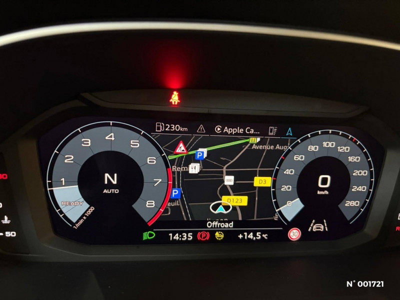 Tapis de sol AV/AR / Volant cuir multifonctions Plus 3 branches avec palettes de commande au volant / Sièges AV réglables manuellement: Hauteur et positionnement en longueur, Inclinaison de dossier, Hauteur des appuie-tête et des ceintures / Cléà fréquence radio / Sellerie Tissu "Argument" / Sièges standards / Suspensions Confort / Audi Pre Sense front Détecte la zone située devant le véhicule et avertit le conducteur par des signaux visuels et sonores en cas de potentielle situation dangereuse avec des véhicules qui précèdent ou qui sont arrêtés. Le système avertit alors le conducteur par un signal sonore et visuel. Simultanément, le système prépare un éventuel freinage complet, et engage un freinage d'urgence automatisé, dans le cas où celui-ci s'avérerait nécessaire / Avertisseur de franchissement de ligne et avertisseur de changement de voie / Audi virtual cockpit / Boîtiers de rétroviseurs extérieurs couleur carrosserie / Audi Smartphone Interface / Audi Hold Assist / Câbles de recharge pour téléphone portable compatibles Apple et Android / Audi Drive Select / Audi Connect sécurité et assistance en ligne / Audi Pre Sense Basic Déploie automatiquement, lorsque nécessaire, des mesures préventives pour votre sécurité et celle de vos passagers, parmi lesquelles: Resserrement des ceintures de sécuritéà l'avant afin de limiter tout déplacement des passagers vers l'avant ou les côtés, Activation des feux de détresse clignotants / Audi Parking System Plus / Audi Connect Navigation et Divertissement / Applications décoratives Argent micrométallique / Assise et dossier de banquette AR, divisée, rabattable 40/20/40, Assise coulissante en longueur, Dossier avec inclinaison réglable / Rétroviseur intérieur jour/nuit automatique sans encadrement / Préparation pour la navigation MMI plus / Appui lombaire à 4 axes pour les sièges AV: réglages électrique, horizontal et vertical / Accoudoir central coulissant en longueur, avec inclinaison réglable et vide-poches relevable / 2 prises USB AR (type-C) et prise 12V dans la console centrale AR / Rétroviseurs extérieurs réglables, dégivrants et rabattables électriquement avec fonction rabat automatique / Pare-brise en verre acoustique avec verre feuilleté athermique / Pack Brillance Extérieur / Pack Aluminium Intérieur / Phares AV à LED (feux de croisement, feux de route, feux diurnes et feux de position LED, clignotants à ampoule) / Jantes en aluminium coulé 17" 5 branches doubles 7Jx17", pneus 215/65 R17 / Interface USB pour chargement d'appareils externes / Interface Bluetooth / Outillage de bord / MMI Radio Plus avec MMI Touch / Kit réparation / Extérieur standard / Hayon de coffre à ouverture et fermeture électrique / Fixation pour sièges enfants ISOFIX et Top Tether pour les sièges extérieurs AR / Ecrous de roues antivol / Direction assistée électromécanique, asservie à la vitesse / Détecteur de pluie et de luminosité / Eclairage intérieur / Trousse de secours, triangle de présignalisation et 2 vestes de sécurité