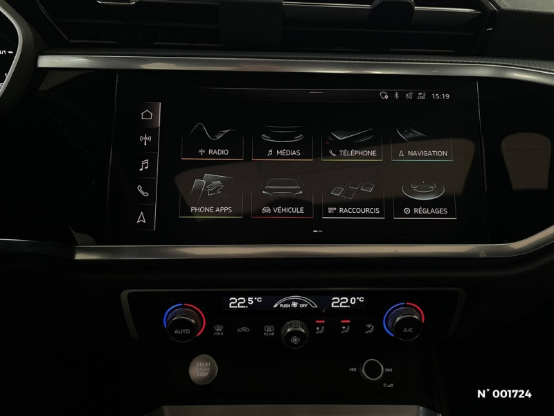 Protection du seuils de chargement en plastique / Calandre grenue / Diffuseur Anthracite / Pare-chocs, passage de roue et extensions de bas de caisse grenues, en Noir / Audi Pre Sense Basic / Audi Parking System AR / Moulures de seuils de portes en plastique / Audi Pre Sense front / Audi Drive Select / Audi Connect Navigation et Divertissement / Audi Connect Navigation et Divertissement Plus / Assistance en ligne / Audi Parking System Plus / Audi Hold Assist / Appuis lombaires à 4 axes pour les sièges AV / Assise et dossier de banquette AR, divisée, rabattable 40/20/40 / Tapis de sol AV/AR / Trousse de secours, triangle de présignalisation et veste de sécurité / 2 prises USB à l'AR et prise 12 V dans la console centrale AR / Accoudoir central AV avec vide-poches relevable et inclinaison réglable et coulissant en longueur / Applications décoratives Argent micrométallique / Sièges AV réglables manuellement: Hauteur et positionnement en longueur, Inclinaison de dossier, Hauteur des appuie-tête et des ceintures / Suspensions Confort / Rétroviseurs extérieurs réglables, dégivrants et rabattables électriquement avec fonction rabat automatique / Rétroviseur intérieur jour/nuit automatique sans encadrement / Sellerie Tissu "Argument" / Rétroviseurs extérieurs couleur carrosserie / Phares à LED avec clignotants dynamiques AR / Pack Brillance Extérieur / MMI Navigation plus avec MMI touch / Pare-brise en verre de sécurité feuilleté athermique / Pack Aluminium Intérieur / Outillage de bord / Fixation pour sièges enfants ISOFIX et Top Tether pour les sièges extérieurs AR / Interface USB pour chargement d'appareils externes / Interface Bluetooth / Kit réparation / Jantes en aluminium coulé 17" 5 branches doubles 7Jx17", pneus 215/65 R17 / Ecrous de roues antivol / Hayon de coffre à ouverture et fermeture électrique / Détecteur de pluie et de luminosité / Combiné d'instruments entièrement numérique 10,25" / Eclairage intérieur / Direction assistée électromécanique, asservie à la vitesse / Avertisseur de franchissement de ligne et avertisseur de changement de voie / Audi virtual cockpit / Cléà fréquence radio / Volant cuir multifonctions Plus 3 branches avec palettes de commande au volant