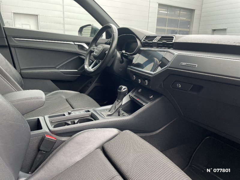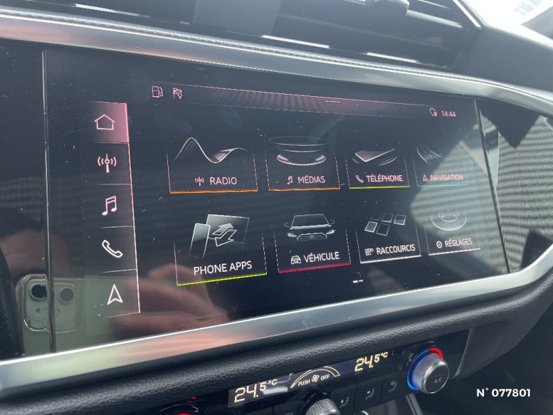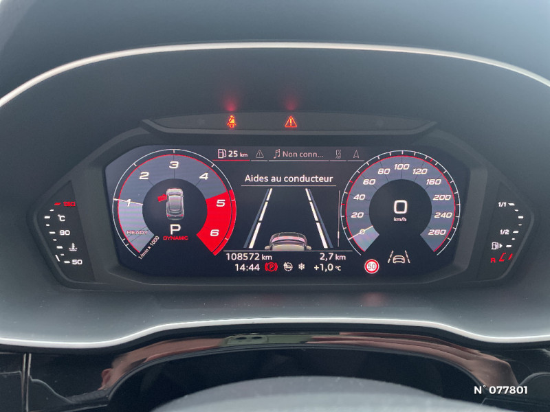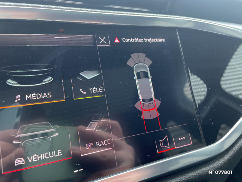 Application intérieures en style aluminium / Pack style brillant / Volant multifonction en cuir à branches doubles avec palettes / Pack intérieur S line tissu - Application de volant en style chrome - Enjoliveurs de seuil de porte avec inserts en aluminium à l'AV - Protection de seuil de chargement en acier inoxydable - Insert décoratif peinture fine Gris Volcan - Bloc de commande sur le volant en Noir Mat - Eléments d'équipements intérieur en tissu - Pédalier standard, Sièges Sport / Jantes style à 5 branches doubles 235/60 R17 / Pack extérieur standard / Bloc de commande sur le volant en Noir Mat / Audi Virtual cockpit plus Combiné d'instruments entièrement numérique de 11,9 pouces avec technologie OLED / Système d'aide au stationnement AV et AR / Sellerie en tissu 'Impressum' / Insert décoratifs peinture fine Gris / Pack Tech -Rétroviseur intérieur à réglage jour/nuit automatique -Rétroviseurs ext. réglables dégivrants et rabattables électriquement à réglage jour/nuit automatique des 2 côtés -Projection de logo sur le sol depuis les rétroviseurs extérieurs -Appui lombaire 4 voies pour les sièges AV -Clé confort sans safelock -Projecteurs à LED plus -Assistant feux de route -Caméra de recul -Régulateur de vitesse adaptatif -Park assist plus avec système de stationnement et affichage à 360° -Hold assist / Cléà radio commande sans SAFELOCK / Sièges AV à réglage manuel / Vitrage latérales et AR athermique / 2 ports USB-C à l'AV et l'AR / Audi connect appel d'urgence & service avec Audi connect remote & control / MMI Navigation plus avec MMI touch / Airbags à l'AV, airbag du passager AV désactivable / Pack design Advanced avec peinture contrastée des éléments de bas de caisse Gris Tambora / Contrôle de la traction (TCS) / Boîte automatique S Tronic 7 vitesses / Avertissement de contrôle de la banquette AR / Fixation de siège pour enfant i-Size côté passager AV et i-Size et Top Tether pour les sièges AR extérieurs / Peinture contrastée avec éléments de bas de caisse peints en Gris Tambora / Audi Application Store et smartphone interface / Assistant d'intersection AV Surveille la zone située devant et sur le côté du véhicule aux intersections et aux sorties de route à l'aide des capteurs radar intégrés à l'AV du véhicule. Dans les limites du système, il détecte les objets en mouvement tels que les voitures qui s'approchent. Le système fonctionne dans une plage de vitesse allant jusqu'à 65 km/h. Dans les situations jugées critiques, le système émet des messages d'avertissement en plusieurs étapes. Tout d'abord, un avertissement visuel et sonore est émis. / Bloc de feux AR à LED pro Avec clignotants dynamiques et mise en scène lumineuse (coming home/leaving home) / Anneaux Audi illuminés à l'AR / Appuie-tête AV / Identification de modèle à l'AR / Réglage du volant manuel / Kit anti-crevaison (sauf si pneus auto-colmatants) / Projecteurs à LED plus avec feux AR LED pro / Garniture du tableau de bord, des contre-portes et des accoudoirs de portes en tissu / Audi phone box light Connexion Bluetooth et compartiment de téléphone avec chargeur à induction au refroidissement actif / Limiteur de vitesse basé sur la détection de signalisation routière / Boîtiers de rétroviseurs dans la teinte du véhicule / Audi Sound System / Audi Drive Select / Ecrous de roues antivol / Tapis de sol AV/AR / Détecteur de pluie et de luminosité / Hayon de coffre à ouverture et fermeture électrique / Ciel de pavillon en tissu / Alerte de sortie de voie avec pilotage semi-automatique du véhicule en cas d'urgence médicale / Assistant d'évitement et assistant de braquage