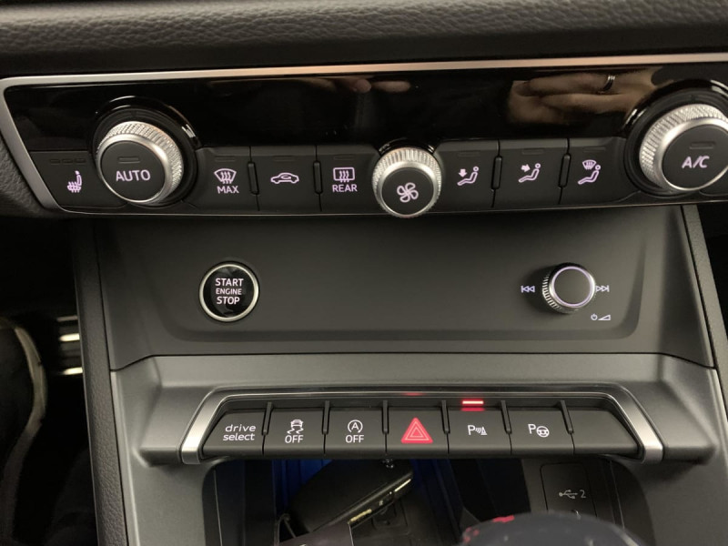 Interface Bluetooth / Pack Aluminium Intérieur / Audi Hold Assist / Appui lombaire à 4 axes pour les sièges AV: réglages électrique, horizontal et vertical / Applications décoratives en aluminium mat Brossé Foncé / Audi Smartphone Interface / Audi Connect Navigation et Divertissement Plus / Détecteur de pluie et de luminosité / Volant cuir Sport multifonctions Plus 3 branches avec méplat et palettes de commande au volant / Vitrage Privacy : lunette AR, vitres de portières AR et vitres latérales AR surteintées / Audi Drive Select / Suspensions Sport / Clé confort incluant déverrouillage du coffre par capteur (sans Safelock) / Rétroviseur intérieur jour/nuit automatique sans encadrement / Sièges AV réglables manuellement: Hauteur et positionnement en longueur, Inclinaison de dossier, Hauteur des appuie-tête et des ceintures / Fixation pour sièges enfants ISOFIX et Top Tether pour les sièges extérieurs AR / Kit réparation / Outillage de bord / Banquette AR avec porte-gobelet dans l'accoudoir de la place centrale / Audi Connect sécurité et assistance en ligne / Hayon de coffre à ouverture et fermeture électrique / Interface USB pour chargement d'appareils externes / Audi Virtual cockpit plus / Accoudoir central coulissant en longueur, avec inclinaison réglable et vide-poches relevable / Assise et dossier de banquette AR, divisée, rabattable 40/20/40, Assise coulissante en longueur, Dossier avec inclinaison réglable / MMI Radio Plus avec MMI Touch / Pare-brise en verre acoustique avec verre feuilleté athermique / 2 prises USB AR (type-C) et prise 12V dans la console centrale AR / Avertisseur de franchissement de ligne et avertisseur de changement de voie / Audi Pre Sense Basic Déploie automatiquement, lorsque nécessaire, des mesures préventives pour votre sécurité et celle de vos passagers, parmi lesquelles: Resserrement des ceintures de sécuritéà l'avant afin de limiter tout déplacement des passagers vers l'avant ou les côtés, Activation des feux de détresse clignotants / Détection de signalisation routière par caméra / Accoudoirs des contre-portes en matériaux synthétiques monopur 550 / Pack Eclairage d'ambiance plus En plus du Pack éclairage d'ambiance: - Choix parmi 30 couleurs - Inscription éclairée sur le tableau de bord passager AV (anneaux Audi sur traction ou quattro) : Eclairage dans la zone des pieds AV/AR Eclairage du porte-boissons AV Eclairage du compartiment de rangement sous le tableau de bord Choix parmi 30 couleurs Eclairage des seuils de portières AV Eclairage d'ambiance latéral de la console centrale AV Miroirs de courtoisie éclairés pour conducteur et passager AV Inscription éclairée sur le tableau de bord passager AV (anneaux Audi) / Pack S line extérieur - Pare-chocs S line, enjoliveurs de passage de roue et extensions de bas de caisse en peinture contrastée - Calandre en noir titane, lames intérieures grises - Lamelles en argent aluminium mat - Encadrement des entrées d'air latérales à l'AV en gris platine mat - Becquet AV en peinture intégrale (couleur de la carrosserie) avec lame gris platine mat - Diffuseur en noir titane mat et grille de diffuseur noir mat grenue - Barrette du diffuseur : noir titane mat : Diffuseur en Noir Titane mat Pare-chocs S line dans une peinture contrastée (Gris Manhattan) Lamelles en Argent Aluminium mat Encadrement des prises d'air latérales AV en Gris Platine mat Becquet AV en peinture intégrale (couleur de la carrosserie) avec lame Gris Platine mat Grille de diffuseur Noir mat grenue Châssis Sport Emblème S line sur les ailes extérieures Barrette du diffuseur noir titane mat Calandre en noir titane, lames intérieures grises Moulures de seuil avec insert en aluminium à l'AV, éclairées, avec inscription S Protection du seuil de chargement en acier inoxydable Enjoliveurs de passage de roue et extensions de bas de caisse en peinture contrastée / Pack S line intérieur : Pédalier et repose-pieds en acier inoxydable Sièges AV sport Frein à main avec surpiqûres contrastées, couleur assortie à celle de l'habitacle Estampillage S line sur le dossier des sièges AV / Pack Esthétique Noir plus - Entourage des vitres latérales avec des baguettes enjoliveuses noir - Calandre Singleframe noire - Pare-chocs AV et AR noirs - Les lames intérieurs de la calandre Singleframe nid d'abeille deviennent noires - Anneaux Audi et monogrammes en Noir brillant : Pare-chocs AV/AR Noirs Entourage des vitres latérales avec des baguettes enjoliveuses Noir Calandre Singleframe Noire Lames intérieurs de la calandre Singleframe nid d'abeille noires au lieu de grises Anneaux Audi et monogrammes en Noir Brillant / Ciel de pavillon en tissu Noir /