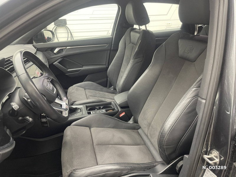 Pack Brillance Extérieur / Kit réparation / Hayon de coffre à ouverture et fermeture électrique / Fixation pour sièges enfants ISOFIX et Top Tether pour les sièges extérieurs AR / MMI Navigation plus avec MMI touch response / Combiné d'instruments entièrement numérique 10,25" / Ciel de pavillon en tissu Noir / Câbles de recharge pour téléphone portable compatibles Apple et Android / Ecrous de roues antivol / Direction assistée électromécanique, asservie à la vitesse / Eclairage intérieur / Audi virtual cockpit / Avertisseur de franchissement de ligne et avertisseur de changement de voie / Banquette AR avec porte-gobelet dans l'accoudoir de la place centrale / Détecteur de pluie et de luminosité / Boîtiers de rétroviseurs extérieurs couleur carrosserie / Cléà fréquence radio / Audi Hold Assist / Audi Drive Select / Audi Parking System Plus / Audi Pre Sense front / Audi Pre Sense Basic / Appuis lombaires à 4 axes pour les sièges AV / Applications décoratives en aluminium mat Brossé Foncé / Audi Connect Navigation et Divertissement / Assise et dossier de banquette AR, divisée, rabattable 40/20/40 / Audi Connect sécurité et assistance en ligne / Accoudoir central AV avec vide-poches relevable et inclinaison réglable et coulissant en longueur / 2 prises USB AR (type-C) et prise 12V dans la console centrale AR / Accoudoirs des contre-portes en similicuir Monopur 550 / Pare-chocs S line dans une peinture contrastée (Gris Manhattan) / Becquet AV en peinture intégrale (couleur de la carrosserie) avec lame Gris Platine mat / Encadrement des prises d'air latérales AV en Gris Platine mat / Moulures de seuil avec insert en aluminium à l'AV, éclairées, avec inscription S / Calandre en noir titane, lames intérieures grises / Protection du seuil de chargement en acier inoxydable / Diffuseur en Noir Titane mat / Emblème S line sur les ailes extérieures / Lamelles en Argent Aluminium mat / Tapis noirs AV/AR avec surpiqûres contrastées gris roche / Barrette du diffuseur noir titane mat / Grille de diffuseur Noir mat grenue / Pédalier et repose-pieds en acier inoxydable / Protection du seuils de chargement en plastique / Moulures de seuils de portes en plastique / Frein à main avec surpiqûres contrastées, couleur assortie à celle de l'habitacle / Surfaces d¿accentuation sur la console centralet+poignées intérieures de portières AV Gris Ardoise / Sellerie Tissu/Similicuir Monopur 550 / Estampillage S line sur le dossier des sièges AV / Sièges AV réglables manuellement: Hauteur et positionnement en longueur, Inclinaison de dossier, Hauteur des appuie-tête et des ceintures / Pare-chocs, passage de roue et extensions de bas de caisse grenues, en Noir / Calandre grenue / Diffuseur Anthracite / Trousse de secours, triangle de présignalisation et 2 vestes de sécurité / Sellerie Tissu/Similicuir Monopur 550 / Suspensions Sport / Rétroviseur intérieur jour/nuit automatique sans encadrement / Rétroviseurs extérieurs réglables, dégivrants et rabattables électriquement avec fonction rabat automatique / Outillage de bord / Pare-brise en verre de sécurité feuilleté athermique / MMI Radio Plus avec MMI Touch / Phares à LED avec clignotants dynamiques AR / Tapis de sol AV/AR / Interface USB pour chargement d'appareils externes / Jantes en aluminium coulé 18" 5 branches en V 7Jx18", pneus 235/55 R18 / Interface Bluetooth / Pack Aluminium Intérieur