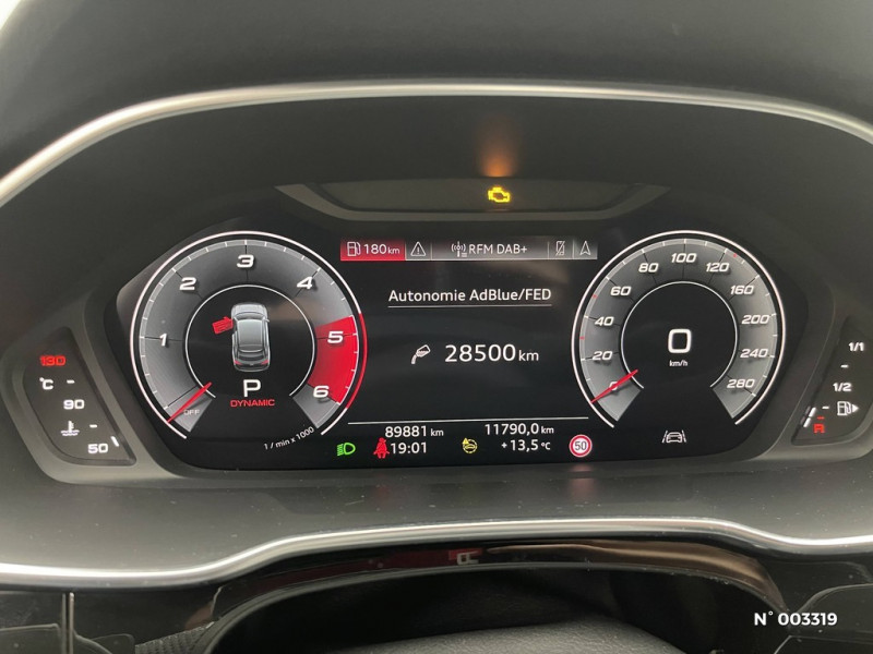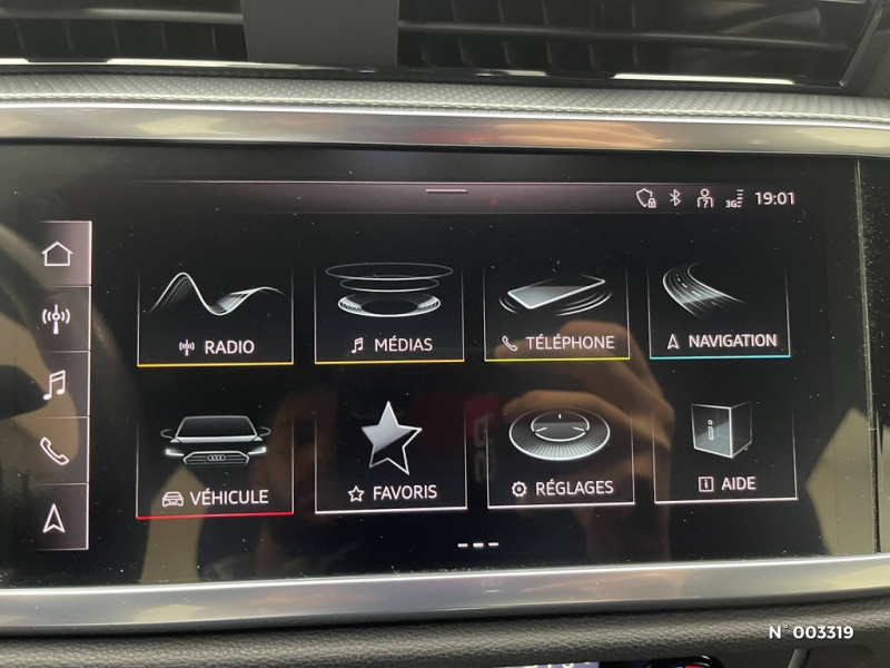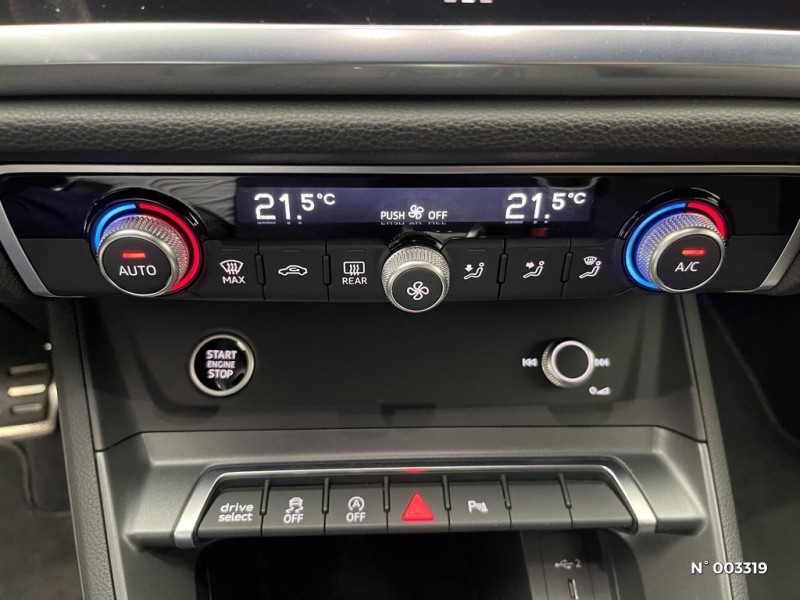 Airbags à l'AV, airbag du passager AV désactivable / Contrôle de la traction (TCS) / Boîte automatique S Tronic 7 vitesses / Volant multifonction en cuir à branches doubles avec palettes / Jantes style à 5 branches doubles 235/60 R17 / Bloc de commande sur le volant en Noir Mat / Audi Virtual cockpit plus Combiné d'instruments entièrement numérique de 11,9 pouces avec technologie OLED / Système d'aide au stationnement AV et AR / Sellerie en tissu 'Impressum' / Bloc de feux AR à LED pro Avec clignotants dynamiques et mise en scène lumineuse (coming home/leaving home) / Anneaux Audi illuminés à l'AR / Identification de modèle à l'AR / Réglage du volant manuel / Kit anti-crevaison (sauf si pneus auto-colmatants) / Assistant d'intersection AV Surveille la zone située devant et sur le côté du véhicule aux intersections et aux sorties de route à l'aide des capteurs radar intégrés à l'AV du véhicule. Dans les limites du système, il détecte les objets en mouvement tels que les voitures qui s'approchent. Le système fonctionne dans une plage de vitesse allant jusqu'à 65 km/h. Dans les situations jugées critiques, le système émet des messages d'avertissement en plusieurs étapes. Tout d'abord, un avertissement visuel et sonore est émis. / Avertissement de contrôle de la banquette AR / Fixation de siège pour enfant i-Size côté passager AV et i-Size et Top Tether pour les sièges AR extérieurs / Audi Application Store et smartphone interface / Sièges AV à réglage manuel / Vitrage latérales et AR athermique / 2 ports USB-C à l'AV et l'AR / Audi connect appel d'urgence & service avec Audi connect remote & control / MMI Navigation plus avec MMI touch / Eclairage intérieur Module d¿éclairage LED au plafond, AV et AR, avec lampes de lecture, Miroirs de courtoisie pour le conducteur et le passager AVt, éclairés, Éclairage de la boîte à gants, Éclairage du coffre à bagages / Assistant de démarrage en côte (Audi Hill Hold Assist) / Banquette AR 40:20:40 ajustable dossier à inclinaison et assise à position longitudinale, complétée par un accoudoir central avec porte-gobelets / Pack intérieur avec sièges sport en tissu - Application de volant en style chrome - Enjoliveurs de seuil de porte avec inserts en aluminium à l'AV - Protection de seuil de chargement en acier inoxydable - Insert décoratif peinture fine Gris Volcan - Bloc de commande sur le volant en Noir Mat - Eléments d'équipements intérieur en tissu - Pédalier standard, Sièges Sport / Ciel de pavillon en tissu Argent Lunaire / Pack style brillant Inserts décoratifs de vitre en style aluminium et anneaux Audi en blanc / Pack extérieur Advanced / Projecteurs à LED plus / Pack Tech -Rétroviseur intérieur à réglage jour/nuit aut. -Rétrovis. ext. réglables dégivrants et rabattables électr.à réglage jour/nuit aut. des 2 côtés -Projection de logo sur le sol depuis les rétroviseurs extérieurs -Appui lombaire 4 voies pour les sièges AV -Clé confort sans safelock -Vitrage acoustique pour (vitres lat. AV) -Assistant feux de route -Caméra de recul -Régulateur de vitesse adaptatif -Park assist plus avec assist, de stationnement et indic. dist. périmetrique -Hold assist / Peinture contrastée avec éléments de bas de caisse peints en Gris Tambora / Audi Sound System / Audi Drive Select / Ecrous de roues antivol / Tapis de sol AV/AR / Hayon de coffre à ouverture et fermeture électrique / Alerte de sortie de voie avec pilotage semi-automatique du véhicule en cas d'urgence médicale / Assistant d'évitement et assistant de braquage / Application intérieures en style aluminium / Boîtiers de rétroviseurs dans la teinte du véhicule / Audi phone box light Connexion Bluetooth et compartiment de téléphone avec chargeur à induction au refroidissement actif / Limiteur de vitesse basé sur la détection de signalisation routière / Technologie hybride léger - Mild-Hybrid / Trousse de secours avec triangle de présignalisation et veste de signalisation / Indicateur de perte de pression des pneumatiques / Airbags latéraux à l'AV avec système d'airbags rideaux et airbag central à l'AV / Sécurité enfant commandée électrique / Assistance au freinage d'urgence à l'AV Scanne la zone située devant le véhicule et peut, en fonction de la situation et de la vitesse, avertir de l'imminence d'une collision et déclencher les mesures de freinage appropriées. / Audi connect Navigation & Infotainment / Châssis standard