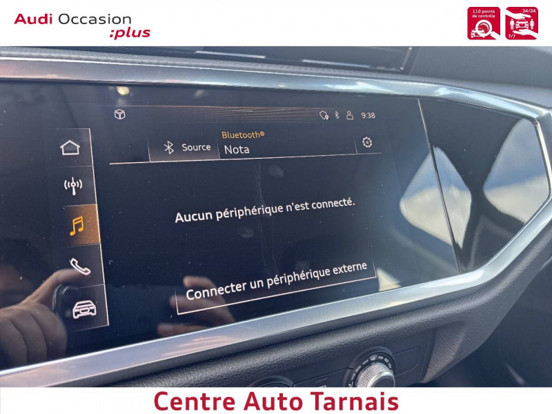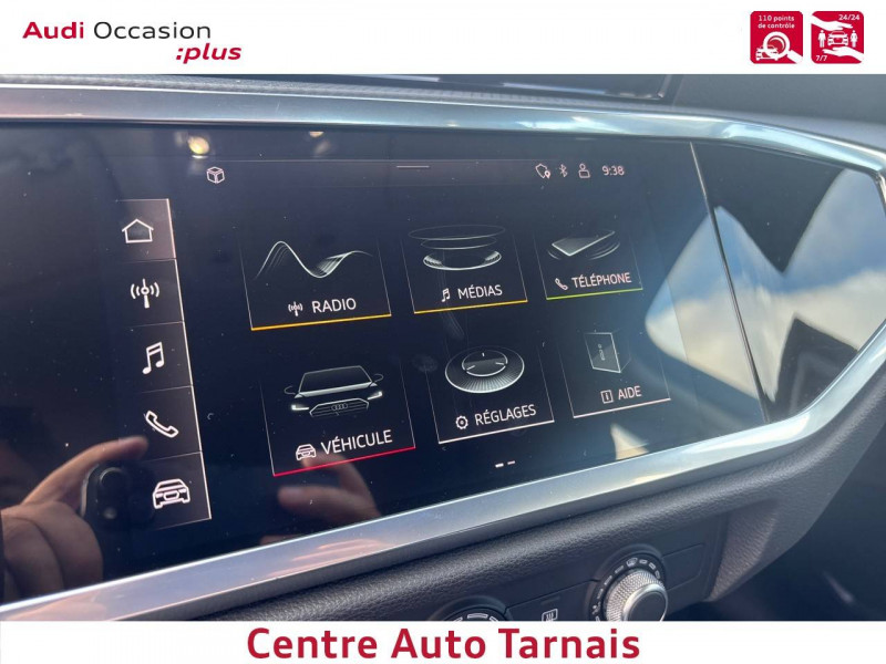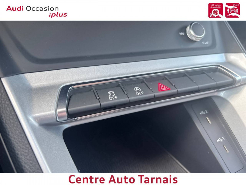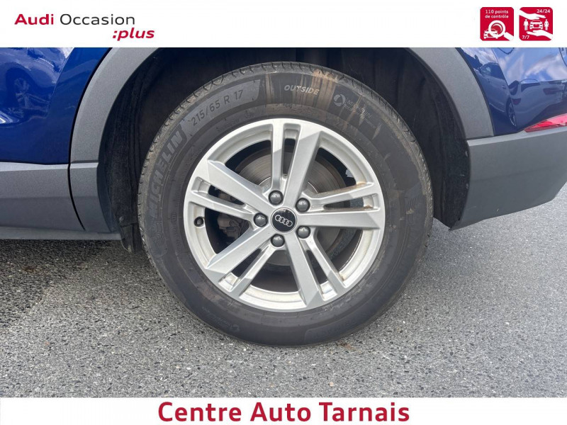 Jantes en aluminium coulé 17" 5 branches doubles 7Jx17", pneus 215/65 R17 / Pack Extérieur / Pack Sécurité / Phares AV à LED (feux de croisement, feux de route, feux diurnes et feux de position LED, clignotants à ampoule) / Rétroviseur intérieur jour/nuit automatique sans encadrement / 2 prises USB à l'AR et prise 12 V dans la console centrale AR / Accoudoir central AV avec vide-poches relevable et inclinaison réglable et coulissant en longueur / Applications décoratives Argent micrométallique / Assise et dossier de banquette AR, divisée, rabattable 40/20/40 / Audi Connect sécurité et assistance en ligne / Audi Hold Assist / Audi Parking System AR / Audi Pre Sense Basic / Audi Pre Sense front / Boîtiers de rétroviseurs extérieurs dans la couleur de la carrosserie / Cléà fréquence radio / Combiné d'instruments entièrement numérique 10,25" / Direction assistée électromécanique, asservie à la vitesse / Détecteur de pluie et de luminosité / Eclairage intérieur / Ecrous de roues antivol / Fixation pour sièges enfants ISOFIX et Top Tether pour les sièges extérieurs AR / Interface Bluetooth / Interface USB de type A pour le chargement d'appareils externes uniquement / Kit réparation / MMI Radio Plus avec MMI Touch / Outillage de bord / Pare-brise en verre acoustique avec verre feuilleté athermique / Rampes de pavillon Noires / Sièges AV réglables manuellement Hauteur et positionnement en longueur, Inclinaison de dossier, Hauteur des appuie-tête et des ceintures / Suspensions Confort / Tapis de sol AV/AR / Trousse de secours, triangle de présignalisation et 2 vestes de sécurité