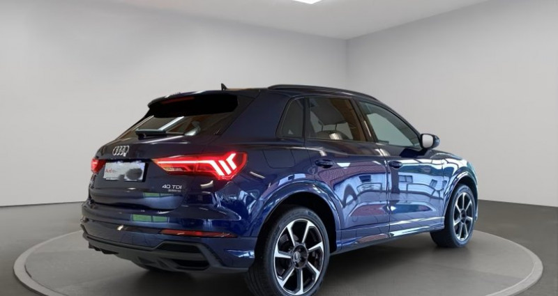 Cylindrée : 1968 cm3 EQUIPEMENTS DE SERIE ========================= 2 prises USB a l'AR et prise 12 V dans la console centrale AR 2 prises USB AR (type-C) et prise 12V dans la console centrale AR Accoudoir central AV avec vide-poches relevable et inclinaison reglable et coulissant en longueur Accoudoir central coulissant en longueur, avec inclinaison reglable et vide-poches relevable Accoudoirs des contre-portes en similicuir Monopur 550 Affichage de controle de pression des pneus Appel d'urgence Audi connect Applications decoratives en aluminium mat Brosse Fonce Appui lombaire a 4 axes pour les sieges AV, reglage electrique, horizontal et vertical Appuis lombaires a 4 axes pour les sieges AV Assise et dossier de banquette AR, divisee, rabattable 40/20/40 Assise et dossier de banquette AR, divisee, rabattable 40/20/40, Assise coulissante en longueur, Audi connect Audi Connect Navigation et Divertissement Audi Connect securite et assistance en ligne Audi Drive Select Audi Hold Assist Audi Parking System Plus Audi Pre Sense Basic Audi Pre Sense front Audi virtual cockpit Avertisseur de franchissement de ligne Avertisseur de franchissement de ligne et Audi Side Assist Avertisseur de franchissement de ligne et avertisseur de changement de voie Banquette AR avec porte-gobelet dans l'accoudoir de la place centrale Boitiers de retroviseurs exterieurs dans la couleur de la carrosserie Cables de recharge pour telephone portable, compatibles iPhone et Android Ciel de pavillon en tissu noir Cle a frequence radio Climatisation automatique confort 2 zones Combine d'instruments entierement numerique 10,25 Detecteur de pluie et de luminosite Direction assistee electromecanique, asservie a la vitesse Eclairage interieur Ecrous de roues antivol Fixation pour sieges enfants ISOFIX et Top Tether pour les sieges exterieurs AR Interface Bluetooth Interface USB de type A pour le chargement d'appareils externes uniquement Interface USB pour chargement d'appareils externes Jantes en aluminium coule 18 5 branches en V Kit reparation MMI Navigation plus avec MMI touch MMI Navigation plus avec MMI touch response MMI Radio Plus avec MMI Touch Outillage de bord Pack Aluminium Interieur Pack S line exterieur Pack Securite Pare-brise en verre acoustique avec verre feuillete athermique Pare-brise en verre de securite feuillete athermique Pare-chocs S line dans une peinture integrale (couleur de la carrosserie) Phares a LED, avec clignotants AR a LED dynamiques Rampes de pavillon en Aluminium, anodisees Rampes de pavillon Noires Reception radio numerique (DAB) Recuperation d'energie Regulateur de vitesse Retroviseur interieur jour/nuit automatique sans encadrement Retroviseurs exterieurs reglables, degivrants et rabattables electriquement avec fonction Retroviseurs exterieurs reglables, degivrants et rabattables electriquement avec position Sellerie en Tissu/materiaux synthetiques mono pur 550 Sellerie Tissu/Similicuir Monopur 550 Sieges AV reglables manuellement Sieges AV sport Suspensions Sport Systeme Start & Stop avec recuperation d'energie au freinage Tapis de sol AV/AR Trousse de secours, triangle de presignalisation et 2 vestes de securite Volant cuir multifonctions Plus 3 branches OPTIONS PRESENTES SUR CE VEHICULE ========================= Audi Smartphone Interface : 600.00€ Boitiers de retroviseurs exterieurs noir : 120.00€ Cle confort incluant deverrouillage du coffre par capteur (sans Safelock) : 460.00€ Jantes en aluminium coule 19 5 branches dynamiques : 1000.00€ Pack Esthetique Noir : 620.00€ Peinture metallisee Bleu Navarre : 900.00€ Retroviseurs exterieurs reglables : degivrants, rabattables electriquement avec fonction rabat : 80.00€ Sellerie Cuir/materiaux synthetiques Monopur 550 style Dinamica Frequence : 450.00€ Sieges AV chauffants : 380.00€ Sieges AV reglables electriquement : 780.00€ Vitrage Privacy : lunette AR, vitres de portieres AR et vitres laterales AR surteintees : 450.00€