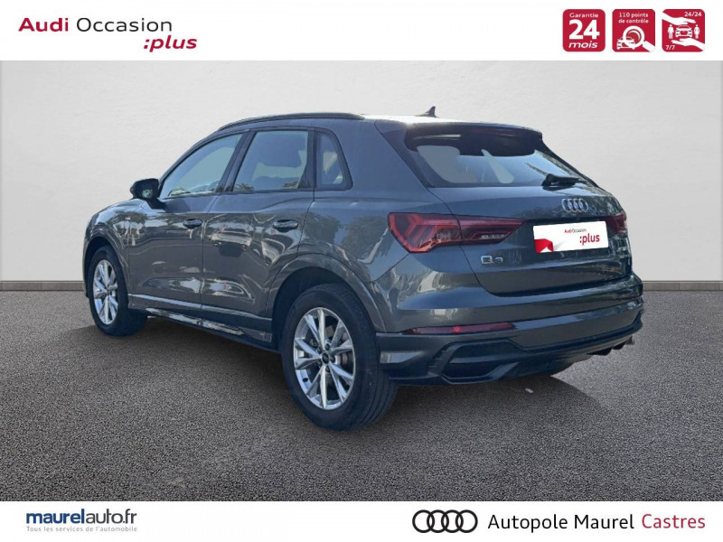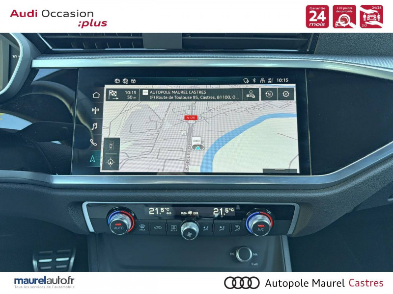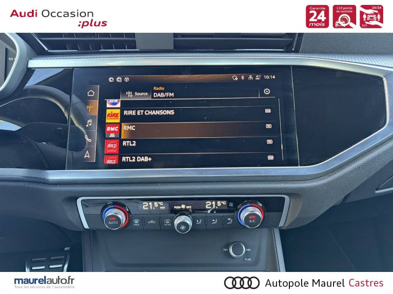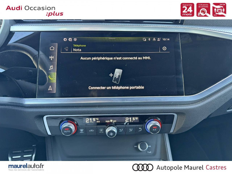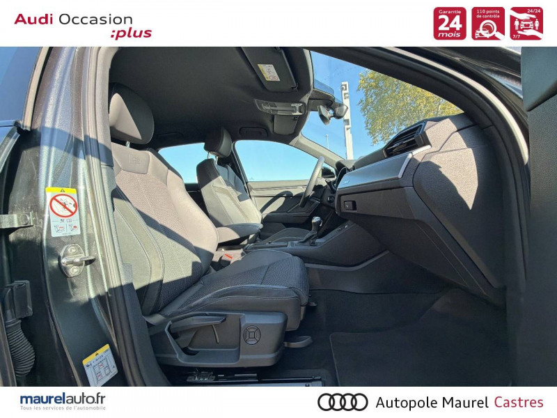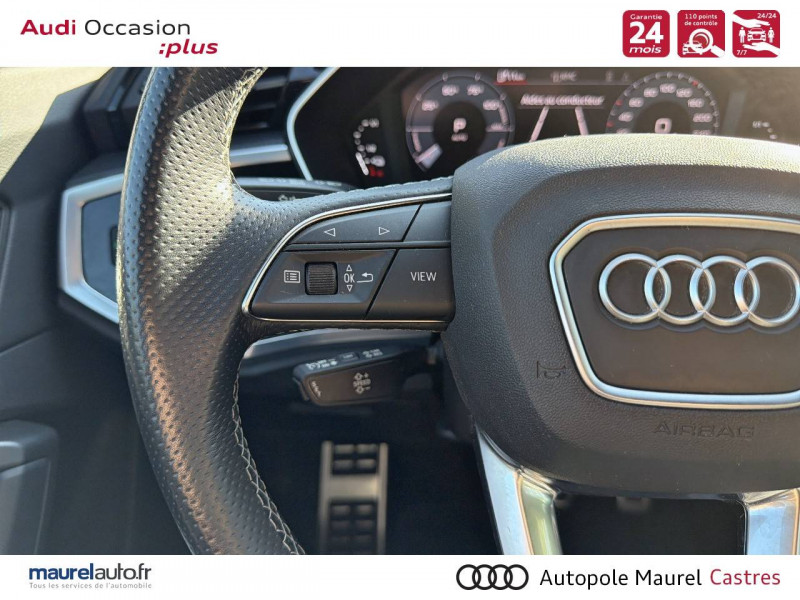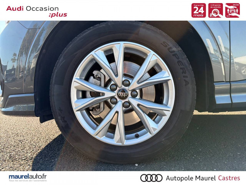 2 prises USB AR (type-C) et prise 12V dans la console centrale AR / Accoudoir central AV avec vide-poches relevable et inclinaison réglable et coulissant en longueur / Accoudoirs des contre-portes en similicuir Monopur 550 / Applications décoratives en aluminium mat Brossé Foncé / Appuis lombaires à 4 axes pour les sièges AV / Assise et dossier de banquette AR, divisée, rabattable 40/20/40 / Audi Connect Navigation et Divertissement / Audi Connect sécurité et assistance en ligne / Audi Drive Select / Audi Hold Assist / Audi Parking System Plus / Audi Pre Sense Basic / Audi Pre Sense front / Audi virtual cockpit / Banquette AR avec porte-gobelet dans l'accoudoir de la place centrale / Boîtiers de rétroviseurs extérieurs dans la couleur de la carrosserie / Câble de recharge HH Type E (8 A) / Ciel de pavillon en tissu noir / Cléà fréquence radio / Combiné d'instruments entièrement numérique 10,25" / Détecteur de pluie et de luminosité / Direction assistée électromécanique, asservie à la vitesse / Eclairage intérieur / Ecrous de roues antivol / Fixation pour sièges enfants ISOFIX et Top Tether pour les sièges extérieurs AR / Interface Bluetooth / Interface USB pour chargement d'appareils externes / Jantes en aluminium coulé 18" 5 branches en V 7Jx18", pneus 235/55 R18 / Kit réparation / MMI Navigation plus avec MMI touch response / MMI Radio Plus avec MMI Touch / Outillage de bord / Pack Aluminium Intérieur / Pack intérieur estéhtique S line / Pack Sécurité / Pack S line extérieur / Pare-brise en verre acoustique avec verre feuilleté athermique / Pare-chocs S line dans une peinture intégrale (couleur de la carrosserie) / Phares à LED, avec clignotants AR à LED dynamiques / Rampes de pavillon Noires / Rétroviseur intérieur jour/nuit automatique sans encadrement / Rétroviseurs extérieurs réglables, dégivrants et rabattables électriquement avec fonction rabat automatique / Sellerie Tissu/Similicuir Monopur 550 / Sièges AV réglables manuellement: Hauteur et positionnement en longueur, Inclinaison de dossier, Hauteur des appuie-tête et des ceintures / Tapis de sol AV/AR / Trousse de secours, triangle de présignalisation et 2 vestes de sécurité