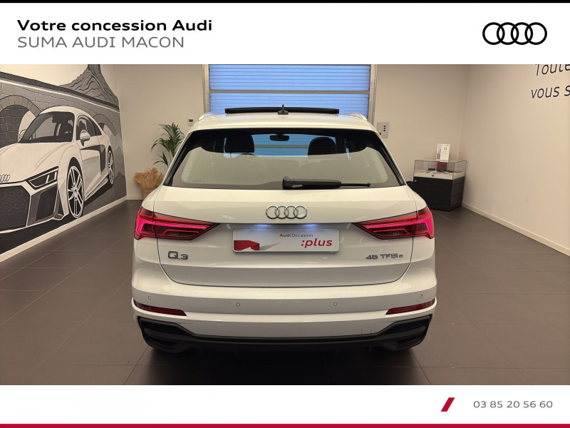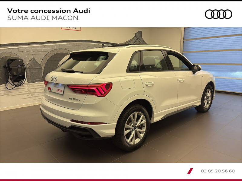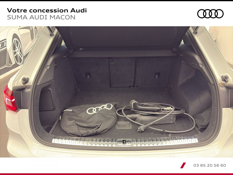 Pack Eclairage d'ambiance / Eclairage dans la zone des pieds AV/AR / Eclairage du porte-boissons AV / Eclairage du compartiment de rangement sous le tableau de bord / Eclairage des seuils de portières AV / Eclairage d'ambiance latéral de la console centrale AV / Miroirs de courtoisie éclairés pour conducteur et passager AV / Accoudoirs des contre-portes en similicuir Monopur 550 / Applications décoratives en aluminium mat Brossé Foncé / Audi Connect Navigation et Divertissement / Audi virtual cockpit / Jantes en aluminium coulé 18 5 branches en V 7Jx18 / pneus 235/55 R18 / MMI Navigation plus avec MMI touch response / Pack Aluminium Intérieur / Pack intérieur estéhtique S line / Pédalier et repose-pieds en acier inoxydable / Tapis AV/AR Noirs avec surpiqûres contrastées Gris Roche / Frein à main avec surpiqûres contrastées / couleur assortie à celle de l'habitacle / Estampillage S line sur le dossier des sièges AV / Surfaces d'accentuation sur la console centrale et poignées intérieures de portières AV couleur laque fine gris ardoise / Pack S line extérieur / Protection en acier inoxydable sur le seuil du chargement / Calandre en Noir Titane / Diffuseur en Noir Titane mat / Lamelles en Argent Aluminium mat / Becquet AV en peinture intégrale (couleur de la carrosserie) avec lame Gris Platine mat / Grille de diffuseur Noir mat grenue / Moulures de seuil de portes avec insert en aluminium à l'AV / éclairées / avec inscription S / Emblème S line sur les ailes extérieures / Barrette du diffuseur noir titane mat / Lames intérieures grises / Encadrement des entrées d'air latérales AV en Gris Platine mat / Pack Sécurité / Sécurité enfant électrique / Fixation pour siège-enfant ISOFIX pour le siège du passager AV / Commande de désactivation de l'airbag passager AV / Phares à LED / avec clignotants AR à LED dynamiques / Rampes de pavillon en Aluminium / anodisées / Rétroviseur intérieur jour/nuit automatique sans encadrement / dégivrants et rabattables électriquement avec fonction rabat automatique / 2 prises USB AR (type-C) et prise 12V dans la console centrale AR / Accoudoir central coulissant en longueur / avec inclinaison réglable et vide-poches relevable / Appui lombaire à 4 axes pour les sièges AV / réglage électrique / horizontal et vertical / Assise et dossier de banquette AR / divisée / Assise coulissante en longueur / Dossier avec inclinaison réglable / Audi Connect sécurité et assistance en ligne / Audi Drive Select / Audi Hold Assist / Audi Parking System Plus / Audi Pre Sense Basic / Audi Pre Sense front / Avertisseur de franchissement de ligne et avertisseur de changement de voie / Banquette AR avec porte-gobelet dans l'accoudoir de la place centrale / Boîtiers de rétroviseurs extérieurs dans la couleur de la carrosserie / Ciel de pavillon en tissu noir / Clé à fréquence radio / Combiné d'instruments entièrement numérique 10 / 25 / Câble de charge pour station publique en CA pour charge en Mode 3 / Type 2 Le câble relie la borne de recharge a la trappe de recharge CA du véhicule. Puissance de charge maximum : 3 / 6kW AC (en courant monophasé). Intensité maximal : 16A / Câble de chargement (8A) avec une prise domestique droite type E/F pour le système de recharge e-tron compact / Longueur : 1 / 6 mètres / Intensité maximum : 8A / Connecteur : type domestique / Câbles de recharge pour téléphone portable / compatibles iPhone et Android / Direction assistée électromécanique / asservie à la vitesse / Détecteur de pluie et de luminosité / Eclairage intérieur / Ecrous de roues antivol / Fixation pour sièges enfants ISOFIX et Top Tether pour les sièges extérieurs AR / Interface Bluetooth / Kit réparation / MMI Radio Plus avec MMI Touch / Outillage de bord / Pare-brise en verre acoustique avec verre feuilleté athermique / Pare-chocs S line dans une peinture intégrale (couleur de la carrosserie) / Réception radio numérique (DAB) / Régulateur de vitesse (fonctionne entre 20 et 250 km/h) / Sièges AV réglables manuellement Hauteur et positionnement en longueur / Inclinaison de dossier / Hauteur des appuie-tête et des ceintures / triangle de présignalisation et 2 vestes de sécurité