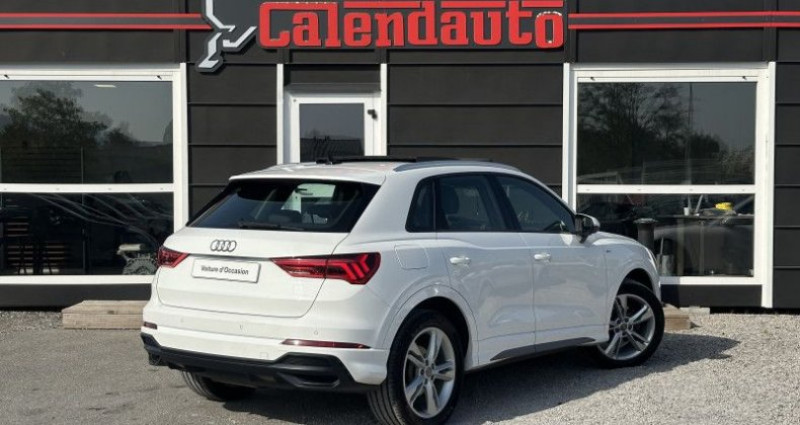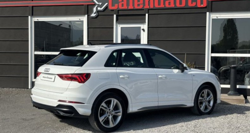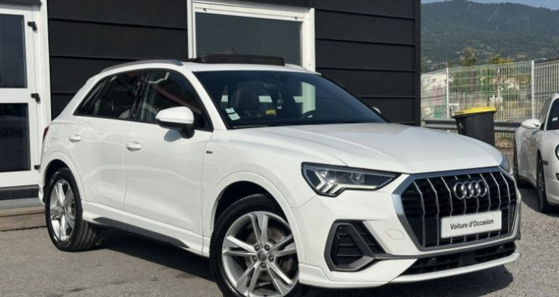 Audi Q3 35 TDI 150CH S LINE S TRONIC 7 - TO - 150 CH -, (S.U.V.), BLANC, 8cv, 5 portes, mise en circulation le 29-05-2019. 5 places, longueur : 4,48 mètres, boîte de vitesse : automatique OPTIONS ET EQUIPEMENTS : Audio - Télécommunications - 6 Haut parleurs - Appel d'Assistance Localisé - Appel d'Urgence Localisé - Borne Wi-Fi - Commandes du système audio au volant - Commandes vocales - Ecran tactile - Fonction MP3 - GPS Cartographique - Kit mains-libres Bluetooth - Lecteur carte SD - Prise USB - Radio - Radio numérique DAB - Services connectés - Stations de webradio - TMC - Volume automatique de la radio Conduite - Aide au démarrage en côte - Arrêt et redémarrage auto. du moteur - Capteur de luminosité - Capteur de pluie - Chassis Sport - Commande du comportement dynamique - Palettes changement vitesses au volant - Régulateur de vitesse - Suspensions Sport Extérieur - Becquet arrière - Calandre chromée - Diffuseur AR noir - Feux arrière à LED - Feux de jour à LED - Feux de position à LED - Filtre à particules - Jantes Alu - Phares avant LED - Radar de stationnement AR - Radar de stationnement AV - Rétroviseurs dégivrants - Rétroviseurs ext. indexés à la marche AR - Rétroviseurs rabattables automatique - Rétroviseurs rabattables électriquement - Rétroviseurs électriques - Toit panoramique Intérieur - Accoudoir arrière - Accoudoir central AV avec rangement - Appui-tête conducteur réglable hauteur - Appui-tête passager réglable en hauteur - Audi virtual cockpit plus - Bacs de portes arrière - Bacs de portes avant - Banquette 40/20/40 - Banquette AR rabattable - Banquette coulissante - Boite à gants fermée - Clim automatique bi-zones - Compte tours - Eclairage d'ambiance - Ecran multifonction couleur - Filtre à Pollen - Fixations Isofix aux places arrières - Inserts de porte métal - Inserts de tableau de bord métal - Lampe de coffre - Lampes de lecture à l'arrière - Lampes de lecture à l'avant - Miroir de courtoisie conducteur - Miroir de courtoisie passager - Ordinateur de bord - Pack éclairage d'ambiance - Porte-gobelets arrière - Porte-gobelets avant - Prise 12V - Pédalier sport - Rétroviseur intérieur électrochrome - Siège cond. avec réglage lombaire électr - Siège conducteur réglable en hauteur - Siège passager avec réglage lombaire - Siège passager réglable en hauteur - Sièges avant sport - Sièges rang 2 inclinables - Température extérieure - Vitres arrière électriques - Vitres avant électriques - Volant cuir - Volant cuir Sport mltfct plus+palettes - Volant multifonction - Volant réglable en profondeur et hauteur Sécurité - ABS - AFIL - Aide au freinage d'urgence - Airbag conducteur - Airbag passager - Airbags latéraux avant - Airbags rideaux AV et AR - Antidémarrage électronique - Antipatinage - BAS - Ceintures avant ajustables en hauteur - Détecteur de sous-gonflage - EBD - ESP - Freinage automatique d'urgence - Reconnaissance panneaux de signalisation - Système de prévention des collisions Autres équipements et informations : - Blanc Glacier métallisé - Pack esthétique noir Kilométrage garanti. Référence annonce : 7569