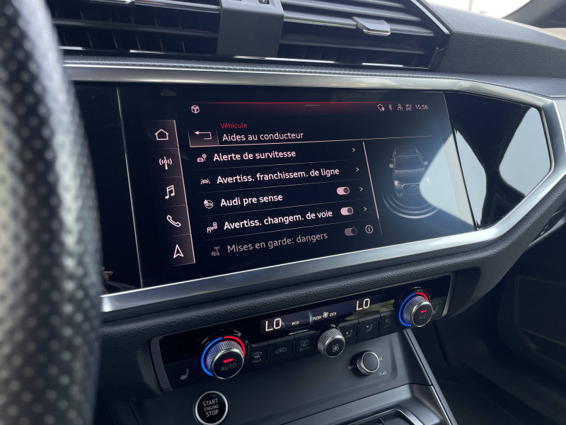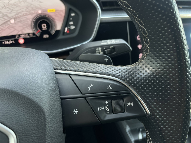 Accoudoirs des contre-portes en similicuir Monopur 550 / Applications décoratives en aluminium mat Brossé Foncé / Audi Connect Navigation et Divertissement / Audi Connect Navigation et Divertissement Plus / Audi Virtual cockpit plus / Jantes en aluminium coulé 19" Audi Sport 5 branches doubles, finition titane mat, polies brillant 8.5Jx19", pneus 255/45 R19 / Navigation MMI plus avec MMI touch response / Pack Aluminium Intérieur / Pack Esthétique Noir / Pack Extérieur / Pack intérieur estéhtique S line / Pack S line extérieur / Pack Sécurité / Phares à LED avec clignotants dynamiques / Rétroviseur intérieur sans encadrement jour/nuit automatique / Rétroviseurs extérieurs réglables, dégivrants et rabattables électriquement avec fonction rabat automatique / 2 prises USB à l'AR et prise 12 V dans la console centrale AR / Accoudoir central coulissant en longueur, avec inclinaison réglable et vide-poches relevable / Appui lombaire à 4 axes pour les sièges AV: réglages électrique, horizontal et vertical / Assise et dossier de banquette AR, divisée, rabattable 40/20/40, Assise coulissante en longueur, Dossier avec inclinaison réglable / Audi connect sécurité et assistance en ligne / Audi Drive Select / Audi Hold Assist / Audi Parking System Plus / Audi Pre Sense Basic / Audi Pre Sense front / Audi Smartphone Interface / Avertisseur de franchissement de ligne et avertisseur de changement de voie / Boîtiers de rétroviseurs extérieurs en Noir / Ciel de pavillon en tissu Noir / Clé confort incluant déverrouillage du coffre par capteur / Direction assistée électromécanique, asservie à la vitesse / Détecteur de pluie et de luminosité / Eclairage intérieur / Ecrous de roues antivol / Fixation pour sièges enfants ISOFIX et Top Tether pour les sièges extérieurs AR / Hayon de coffre à ouverture et fermeture électrique / Interface Bluetooth / Interface USB pour chargement d'appareils externes / Kit réparation / MMI Radio Plus avec MMI Touch / Outillage de bord / Pare-brise en verre acoustique avec verre feuilleté athermique Cet équipement empêche une bonne réception des appareils en présence de Waze ou pour le Coyotte / Porte-gobelet dans l'accoudoir de la place centrale (banquette AR) / Rampes de pavillon Noires / Suspensions Sport / Tapis de sol AV/AR / Trousse de secours, triangle de présignalisation et 2 vestes de sécurité / Vitrage Privacy (vitres surteintées)