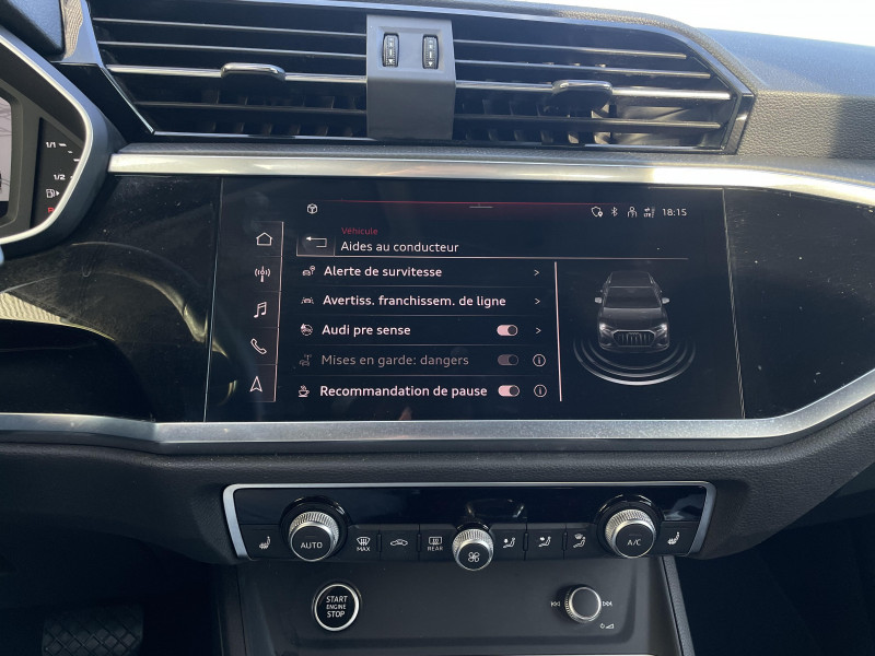Audi Connect Navigation et Divertissement / Audi Connect Navigation et Divertissement Plus / Audi virtual cockpit / Jantes en aluminium coulé 17" 5 branches doubles 7Jx17", pneus 215/65 R17 / MMI Navigation plus avec MMI touch response / Pack Aluminium Intérieur / Phares à LED, avec clignotants AR à LED dynamiques / Rampes de pavillon en Aluminium, anodisées / Rétroviseur intérieur jour/nuit automatique sans encadrement / Rétroviseurs extérieurs réglables, dégivrants et rabattables électriquement avec fonction rabat automatique / Volant cuir multifonctions Plus 3 branches avec palettes de commande au volant / 2 prises USB AR (type-C) et prise 12V dans la console centrale AR / Accoudoir central AV avec vide-poches relevable et inclinaison réglable et coulissant en longueur / Applications décoratives Argent micrométallique / Appuis lombaires à 4 axes pour les sièges AV / Assise et dossier de banquette AR, divisée, rabattable 40/20/40 / Audi Connect sécurité et assistance en ligne / Audi Drive Select / Audi Hold Assist / Audi Parking System Plus / Audi Pre Sense Basic / Audi Pre Sense front / Boîtiers de rétroviseurs extérieurs dans la couleur de la carrosserie / Cléà fréquence radio / Combiné d'instruments entièrement numérique 10,25" / Direction assistée électromécanique, asservie à la vitesse / Détecteur de pluie et de luminosité / Eclairage intérieur / Ecrous de roues antivol / Fixation pour sièges enfants ISOFIX et Top Tether pour les sièges extérieurs AR / Interface Bluetooth / Interface USB pour chargement d'appareils externes / Kit réparation / MMI Radio Plus avec MMI Touch / Outillage de bord / Pare-brise en verre acoustique avec verre feuilleté athermique / Sièges AV réglables manuellement: Hauteur et positionnement en longueur, Inclinaison de dossier, Hauteur des appuie-tête et des ceintures / Suspensions Confort / Tapis de sol AV/AR / Trousse de secours, triangle de présignalisation et 2 vestes de sécurité