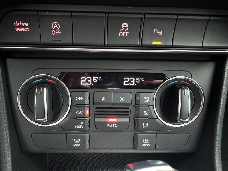 Applications décoratives Aluminium tangente sur tableau de bord, contre-portes et console centrale / Audi Parking System : signal acoustique d'aide au stationnement AR / Châssis dynamique à l'AV jambes de force McPherson avec bras triangulés transversaux inférieurs, châssis auxiliaire en aluminium ; à l'AR essieu à quatre bras avec systèmes d'amortissement et de suspension séparé, châssis auxiliaire / Couvre-bagages coulissant automatiquement par glissières / Essuie-glace AR avec commande de lavage-balayage automatique, balayage au passage de la marche AR lorsque les essuie-glaces AV sont activés / Essuie-glaces AV à 2 vitesses avec réglage d'intermittance sur 4 niveaux, commande de balayage coup par coup et lavage-balayage automatique / Frein de stationnement électromécanique avec fonction frein de secours sur les 4 roues durant la marche / Jantes aluminium coulé 5 branches doubles 7Jx17" avec pneus 235/55 R17 / Pack Aluminium Intérieur / Pack Brillance / Projecteurs Xénon Plus incluant lave-phares, feux de jour à LED / Protection antidémarrage électronique, intégrée à la gestion du moteur, activation automatique par la clé du véhicule / Préparation pour crochet d'attelage, comprend câblage jusqu'au logement de la roue de secours, système approprié de refroidissement du moteur / Rampes de pavillon en aluminium poli / Rétroviseur intérieur jour/nuit automatique (incluant le détecteur de pluie et de luminosité) / Rétroviseurs extérieurs réglables électriquement et dégivrants, clignotants intégrés a LED boîtiers dans la couleur de la carrosserie, miroir asphérique à gauche, convexe à droite / Seuils de portes en aluminium et protection du seuil de chargement en acier inoxydable / Témoins de contrôle pour airbags, ESP/ASR, adaptive air suspension, EDS, frein de stationnement électromécanique, régulateur de vitesse, feux de route, feux AR anribrouillard, clignotants,électronique moteur et protection antidémarrage / Volant airbag multifonctions 4 branches en cuir avec palettes de changement de vitesses sous le volant / Airbags frontaux conducteur et passager grand volume, à deux niveaux de gonflement suivant la gravité du choc / Airbags latéraux AV intégrés aux dossiers de sièges / Appuie-tête intégraux à l'AV et l'AR / Audi Drive Select avec mode "efficiency", permet différents réglages (direction, moteur et transmission) du véhicule / Audi Singleframe, encadrement gris pierre d'une seule pièce sur la calandre, avec anneaux Audi anodisés au centre / Avertisseurs 2 tons avec commande au centre du volant / Banquette AR rabattable 60/40, déverrouillage à distance des dossiers via un levier dans la garniture latérale du coffre / Becquet de pavillon / Blocage électronique de différentiel EDS / Carrosserie galvanisée (entièrement galvanisée aux endroits sensibles à la corrosion) : autoportante soudée au groupe-plancher, zones de déformation définies à l'AV et à l'AR (12 ans de garantie contre la corrosion) / Ceintures de sécurité 3 points à enrouleur pour tous les sièges avec prétensionneur réversible, détecteur de port avec signaux acoustiques et visuel à l'AV, sécurité enfants sur le verrouillage à l'AV et à l'AR / Ciel de pavillon en tissu assorti à la couleur intérieure / Console centrale surélevée avec vide-poches pouvant être utilisé comme porte-boissons avec volet ouvert / Contact d'allumage électronique: clé de contact mémorisant différentes données d'entretien / Contrôle de la pression des pneus avec signaux acoustique et visuel de perte de pression / Direction électromécanique à assistance variable / Détecteur de pluie et de luminosité / Déverrouillage du coffre avec touche douce (déverrouillage avec assistance électrique) / Eclairage intérieur à extinction temporisée et contacteur sur toutes les portes, éclairage coffre, conducteur, passager AV et places AR, spots de lecture à l'AV et à l'AR ainsi que boîte à gants éclairée / Ecrous de roues antivol / Identification du modèle à l'AR, inscription "Quattro" à l'AR, sur la calandre et sur le tableau de bord côté passager AV / Indicateur de rapport de vitesse dans le système d'information conducteur / Instrumentation àéclairage réglable: tachymètre électronique avec compteur kilométrique totalisateur et journalier, compte-tours, heure, affichage de la température du liquide de refroidissement moteur et de la réserve de carburant / Interface Bluetooth / Lunette AR dégivrante avec minuterie / Lève-vitres électriques AV et AR avec protection antipincement et fonction ouverture/fermeture confort par impulsion / MMI Radio/Autoradio Concert avec lecteur CD compatible MP3/WMA et ACC, lecteur de cartes SDHC, écran couleur TFT 6.5", prise AUX-IN et 8HP puissance totale 80W / Moulures de seuils de portes en plastique / Oeilletons de fixation, 4 oeilletons dans le coffre pour arrimer le chargement / Ordinateur de bord monochrome, système de contrôle Autocheck et programme efficiency / Outillage de bord dans le coffre / Pare-brise acoustique avec bande grise / Pare-chocs laqués dans la couleur carrosserie, bas de pare-chocs AV/AR et bandeaux de portes en bas de couleur noir mat / Pare-soleil rabattables et pivotants côté conducteur et passager AV, avec miroir de courtoisie occultable / Plancher de chargement réversible / Poignées de maintien avec mécanisme amortisseur : 4 poignées encastrées dans le ciel de pavillon / Poignées de portières extérieures laquées dans la couleur de carrosserie / Porte-boissons double dans la console centrale / Programme électronique de stabilisation ESP / Protections latérales anticollision / Préparation pour système de repérage satellite permettant la localisation du véhicule en cas de vol / Roue de secours temporaire avec cric de levage / Récupération d'énergie, générée lors des phases de freinage ou de décélération et système Start/Stop permettant un