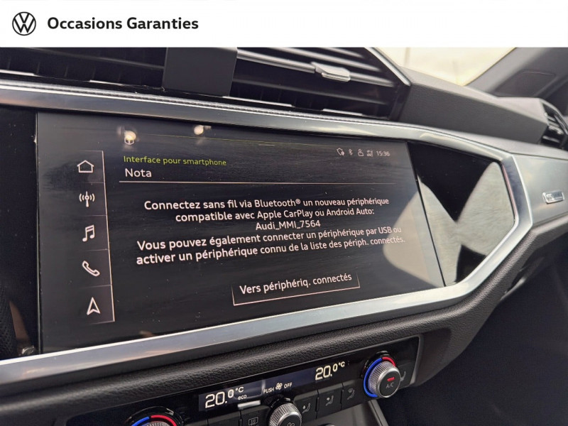 Accoudoirs des contre-portes en similicuir Monopur 550 / Applications décoratives en aluminium mat Brossé Foncé / Audi Connect Navigation et Divertissement / Audi virtual cockpit / Jantes en aluminium coulé 18" 5 branches en V 7Jx18", pneus 235/55 R18 / MMI Navigation plus avec MMI touch response / Pack Aluminium Intérieur / Pack intérieur estéhtique S line / Pack S line extérieur / Pack Sécurité / Phares à LED, avec clignotants AR à LED dynamiques / Rétroviseur intérieur jour/nuit automatique sans encadrement / Rétroviseurs extérieurs réglables, dégivrants et rabattables électriquement avec fonction rabat automatique / 2 prises USB AR (type-C) et prise 12V dans la console centrale AR / Accoudoir central coulissant en longueur, avec inclinaison réglable et vide-poches relevable / Appui lombaire à 4 axes pour les sièges AV, réglage électrique, horizontal et vertical / Assise et dossier de banquette AR, divisée, rabattable 40/20/40 / Audi Connect sécurité et assistance en ligne / Audi Drive Select / Audi Hold Assist / Audi Parking System Plus / Audi Pre Sense Basic / Audi Pre Sense front / Avertisseur de franchissement de ligne et avertisseur de changement de voie / Banquette AR avec porte-gobelet dans l'accoudoir de la place centrale / Boîtiers de rétroviseurs extérieurs dans la couleur de la carrosserie / Ciel de pavillon en tissu noir / Cléà fréquence radio / Combiné d'instruments entièrement numérique 10,25" / Direction assistée électromécanique, asservie à la vitesse / Détecteur de pluie et de luminosité / Eclairage intérieur / Ecrous de roues antivol / Fixation pour sièges enfants ISOFIX et Top Tether pour les sièges extérieurs AR / Interface Bluetooth / Interface USB pour chargement d'appareils externes / Kit réparation / MMI Radio Plus avec MMI Touch / Outillage de bord / Pare-brise en verre acoustique avec verre feuilleté athermique / Rampes de pavillon Noires / Régulateur de vitesse (fonctionne entre 20 et 250 km/h) / Sièges AV réglables manuellement Hauteur et positionnement en longueur, Inclinaison de dossier, Hauteur des appuie-tête et des ceintures / Suspensions Sport / Système Start & Stop avec récupération d'énergie au freinage / Tapis de sol AV/AR / Trousse de secours, triangle de présignalisation et 2 vestes de sécurité
