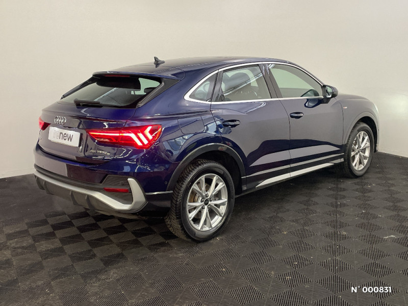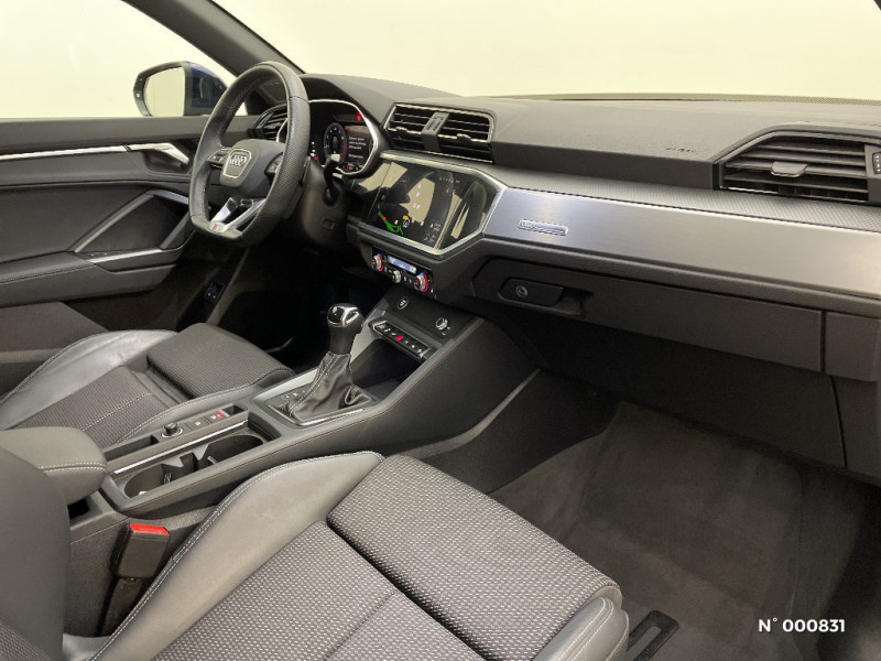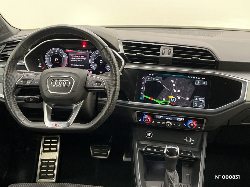 Hayon de coffre à ouverture & fermeture électrique / Phares à LED avec clignotants dynamiques AR / Rétroviseurs extérieurs réglables, dégivrants et rabattables électriquement avec fonction rabat automatique / Sellerie en Tissu/matériaux synthétiques mono pur 550 / Ciel de pavillon en tissu noir / Accoudoir central coulissant en longueur, avec inclinaison réglable et vide-poches relevable / Assise et dossier de banquette AR, divisée, rabattable 40/20/40, Assise coulissante en longueur, Dossier avec inclinaison réglable / MMI Navigation plus avec MMI touch response / MMI Radio Plus avec MMI Touch / Boîtiers de rétroviseurs extérieurs couleur carrosserie / Pare-brise en verre acoustique avec verre feuilleté athermique / 2 prises USB AR (type-C) et prise 12V dans la console centrale AR / Avertisseur de franchissement de ligne et avertisseur de changement de voie / Câbles de recharge pour téléphone portable compatibles Apple et Android / Câble de chargement (8A) avec une prise domestique droite type E/F pour le système de recharge e-tron compact, Longueur : 1,6 mètres, Intensité maximum : 8A, Connecteur : type domestique / Câble de charge pour station publique en CA pour charge en Mode 3 / Type 2 Le câble relie la borne de recharge a la trappe de recharge CA du véhicule. Puissance de charge maximum : 3,6kW AC (en courant monophasé). Intensité maximal : 16A / Audi Pre Sense front Détecte la zone située devant le véhicule et avertit le conducteur par des signaux visuels et sonores en cas de potentielle situation dangereuse avec des véhicules qui précèdent ou qui sont arrêtés. Le système avertit alors le conducteur par un signal sonore et visuel. Simultanément, le système prépare un éventuel freinage complet, et engage un freinage d'urgence automatisé, dans le cas où celui-ci s'avérerait nécessaire. / Audi Pre Sense Basic Déploie automatiquement, lorsque nécessaire, des mesures préventives pour votre sécurité et celle de vos passagers, parmi lesquelles: Resserrement des ceintures de sécuritéà l'avant afin de limiter tout déplacement des passagers vers l'avant ou les côtés, Activation des feux de détresse clignotants / Interface Bluetooth / Pack Aluminium Intérieur / Audi Hold Assist / Appui lombaire à 4 axes pour les sièges AV: réglages électrique, horizontal et vertical / Applications décoratives en Aluminium Brossé mat foncé / Audi Parking System Plus / Ecrous de roues antivol / Cléà fréquence radio / Détecteur de pluie et de luminosité / Jantes en aluminium coulé 18" 5 branches en V 7Jx18" 235/55 R18 / Sellerie Tissu/Similicuir Monopur 550 / Pare-chocs S line dans une peinture contrastée (Gris Manhattan) / Pack Brillance Extérieur / Audi Virtual cockpit / Audi Drive Select / Suspensions Confort / Audi Connect Navigation et Divertissement / Accoudoirs des contre-portes en similicuir Monopur 550 / Direction assistée électromécanique, asservie à la vitesse / Rétroviseur intérieur jour/nuit automatique sans encadrement / Sièges AV réglables manuellement / Fixation pour sièges enfants ISOFIX et Top Tether pour les sièges extérieurs AR / Kit réparation / Outillage de bord / Trousse de secours, triangle de présignalisation et 2 vestes de sécurité / Pack S line extérieur / Pack S line intérieur / Banquette AR avec porte-gobelet dans l'accoudoir de la place centrale / Eclairage intérieur / Audi Connect sécurité et assistance en ligne / Interface USB pour chargement d'appareils externes