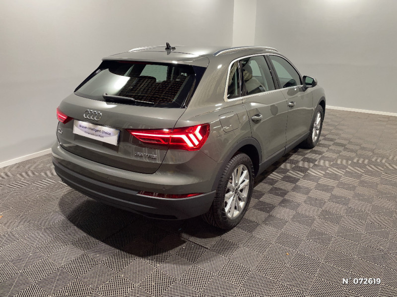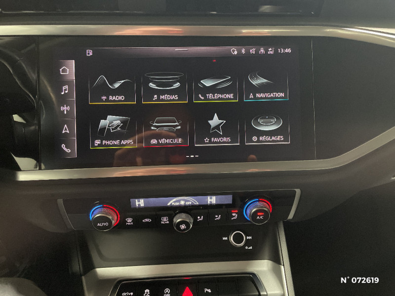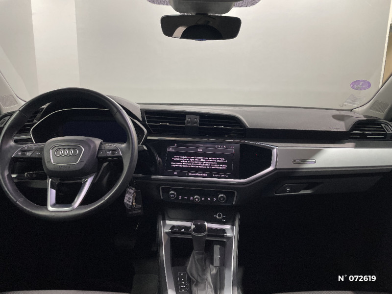 Rétroviseur intérieur jour/nuit automatique sans encadrement / Rétroviseurs extérieurs réglables, dégivrants et rabattables électriquement avec fonction rabat automatique / Sellerie en Tissu/matériaux synthétiques mono pur 550 / Sellerie Tissu/Similicuir Monopur 550 / Sièges AV réglables manuellement: Hauteur et positionnement en longueur, Inclinaison de dossier, Hauteur des appuie-tête et des ceintures / Suspensions Sport / Système de lecture des panneaux de signalisation par caméra / Système Start & Stop avec récupération d'énergie au freinage / Tapis de sol AV/AR / Trousse de secours, triangle de présignalisation et 2 vestes de sécurité / Audi Drive Select / Audi Hold Assist / Audi Parking System Plus / Audi Pre Sense Basic / Audi Pre Sense front / Audi Smartphone Interface / Audi virtual cockpit / Avertisseur de franchissement de ligne et avertisseur de changement de voie / Banquette AR avec porte-gobelet dans l'accoudoir de la place centrale / Boîtiers de rétroviseurs extérieurs dans la couleur de la carrosserie / Câbles de recharge pour téléphone portable, compatibles iPhone et Android / Ciel de pavillon en tissu noir / Cléà fréquence radio / Clé confort incluant déverrouillage du coffre par capteur (sans Safelock) / Combiné d'instruments entièrement numérique 10,25" / Détecteur de pluie et de luminosité / Direction assistée électromécanique, asservie à la vitesse / Eclairage intérieur / Ecrous de roues antivol / Fixation pour sièges enfants ISOFIX et Top Tether pour les sièges extérieurs AR / Hayon assistéélectriquement pour l'ouverture et la fermeture / Interface Bluetooth / Interface USB pour chargement d'appareils externes / Jantes en aluminium coulé 18" 5 branches en V 7Jx18", pneus 235/55 R18 / Kit réparation / MMI Navigation plus avec MMI touch / MMI Navigation plus avec MMI touch response / MMI Radio Plus avec MMI Touch / Outillage de bord / Pack Aluminium Intérieur / Pack intérieur estéhtique S line / Pack S line extérieur / Pack S line extérieur - Pare-chocs S line, enjoliveurs de passage de roue et extensions de bas de caisse en peinture contrastée - Calandre en noir titane, lames intérieures grises - Lamelles en argent aluminium mat - Encadrement des entrées d'air latérales à l'AV en gris platine mat - Becquet AV en peinture intégrale (couleur de la carrosserie) avec lame gris platine mat - Diffuseur en noir titane mat et grille de diffuseur noir mat grenue - Barrette du diffuseur : noir titane mat / Pack S line intérieur - Sièges Sport AV - Sellerie en tissu/matériaux synthétiques monopur 550 et estampillage S line sur le dossier des sièges AV - Frein à main avec surpiqûres contrastées, couleur assortie à celle de l'habitacle - Surfaces d'accentuation sur la console centrale et poignées intérieures de portières à l'AV de couleur laque fine gris ardoise - Pédalier et repose-pied en acier inoxydable - Tapis noirs AV et AR avec surpiqûres contrastées gris roche / Pack Sécurité / Pack Sécurité - Fixation pour sièges enfants ISOFIX pour le siège passager AV - Commande de désactivation de l'airbag passager AV - Avec sécurité enfant électrique / Pare-brise en verre acoustique avec verre feuilleté athermique / Pare-chocs S line dans une peinture intégrale (couleur de la carrosserie) / Phares à LED, avec clignotants AR à LED dynamiques / Phares à LED avec clignotants dynamiques AR / Rampes de pavillon en Aluminium, anodisées / Rampes de pavillon Noires / Accoudoir central AV avec vide-poches relevable et inclinaison réglable et coulissant en longueur / Accoudoir central coulissant en longueur, avec inclinaison réglable et vide-poches relevable / Accoudoirs des contre-portes en matériaux synthétiques monopur 550 / Accoudoirs des contre-portes en similicuir Monopur 550 / Applications décoratives en aluminium mat Brossé Foncé / Appui lombaire à 4 axes pour les sièges AV, réglage électrique, horizontal et vertical / Appuis lombaires à 4 axes pour les sièges AV / Assise et dossier de banquette AR, divisée, rabattable 40/20/40 / Assise et dossier de banquette AR, divisée, rabattable 40/20/40, Assise coulissante en longueur, Dossier avec inclinaison réglable / Audi Connect Navigation et Divertissement / Audi Connect sécurité et assistance en ligne / 2 prises USB AR (type-C) et prise 12V dans la console centrale AR / Régulateur de vitesse (fonctionne entre 20 et 250 km/h)