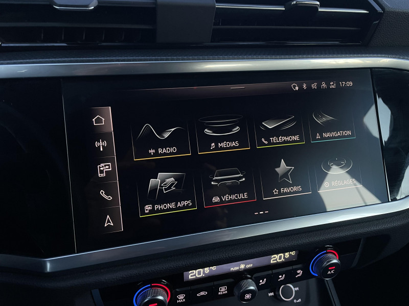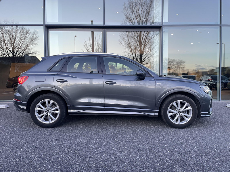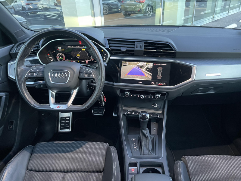 Accoudoirs des contre-portes en similicuir Monopur 550 / Applications décoratives en aluminium mat Brossé Foncé / Audi Connect Navigation et Divertissement / Audi virtual cockpit / Jantes en aluminium coulé 18" 5 branches en V 7Jx18", pneus 235/55 R18 / MMI Navigation plus avec MMI touch response / Pack Aluminium Intérieur / Phares à LED, avec clignotants AR à LED dynamiques / Rétroviseur intérieur jour/nuit automatique sans encadrement / Rétroviseurs extérieurs réglables, dégivrants et rabattables électriquement avec fonction rabat automatique / 2 prises USB à l'AR et prise 12 V dans la console centrale AR / Accoudoir central AV avec vide-poches relevable et inclinaison réglable et coulissant en longueur / Appuis lombaires à 4 axes pour les sièges AV / Assise et dossier de banquette AR, divisée, rabattable 40/20/40 / Audi Connect sécurité et assistance en ligne / Audi Drive Select / Audi Hold Assist / Audi Parking System Plus / Audi Pre Sense Basic / Audi Pre Sense front / Banquette AR avec porte-gobelet dans l'accoudoir de la place centrale / Boîtiers de rétroviseurs extérieurs dans la couleur de la carrosserie / Ciel de pavillon en tissu noir / Cléà fréquence radio / Combiné d'instruments entièrement numérique 10,25" / Direction assistée électromécanique, asservie à la vitesse / Détecteur de pluie et de luminosité / Eclairage intérieur / Ecrous de roues antivol / Fixation pour sièges enfants ISOFIX et Top Tether pour les sièges extérieurs AR / Interface Bluetooth / Interface USB de type A pour le chargement d'appareils externes uniquement / Kit réparation / MMI Radio Plus avec MMI Touch / Outillage de bord / Pare-brise en verre acoustique avec verre feuilleté athermique / Pare-chocs S line dans une peinture intégrale (couleur de la carrosserie) / Rampes de pavillon Noires / Sièges AV réglables manuellement: Hauteur et positionnement en longueur, Inclinaison de dossier, Hauteur des appuie-tête et des ceintures / Suspensions Sport / Tapis de sol AV/AR / Trousse de secours, triangle de présignalisation et 2 vestes de sécurité