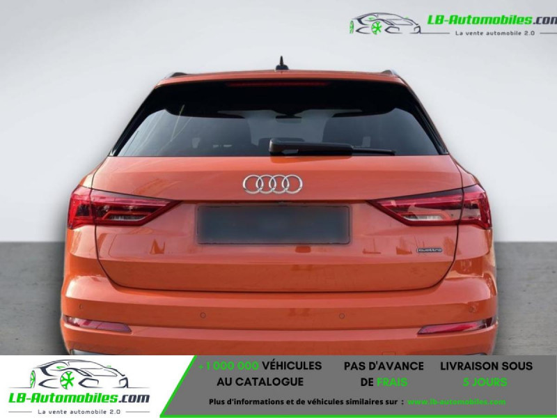 Référence : 1085285 Vos Avantages chez LB-AUTOMOBILES.com / Prix affiché TTC Livré hors carte grise / Livraison sous 10 jours dans toute la France hors 31 / Pas d?avance de frais paiement du véhicule 100% à la livraison par virement. Audi Q3 Neuf remisée, Audi Q3 Occasion Toulouse Beaupuy 31850, Audi Q3 Véhicule sorti de réseau collaborateur, Audi Q3 import, Audi Q3 importateur, Audi Q3 Livraison possible dans toute la France sous 5 jours, Audi Q3, Audi Q3 Location Option Achat, Audi Q3 LLD, Audi Q3 Longue Durée, Audi Q3 TVA récupérable. Possibilité d'extension de garantie 12, 24,36 mois, Pour tout autres voitures import neufs ou occasions collaborateur fortement remisée, Mandataire Audi, Mandataire BMW, Mandataire Volkswagen, Mandataire Mercedes, Mandataire Peugeot Espagne, Mandataire Renault Espagne, Porsche import, Mandataire Citroën Espagne, Mandataire Seat Espagne, n'hésitez pas à nous contacter. « Sous réserve de vente préalable et erreur de saisie » Principaux équipements : - 4x4 - ABS - Accoudoir - Antidémarrage - Assistance de démarrage en côte - Assistant d'angle mort - Assistant feux de route - Avertisseur de franchissement de ligne - Bluetooth - Boîte de vitesses robotisée - Capteur de lumière - Capteur de pluie - Carnet d'entretien - Chauffage auxiliaire - Cockpit numérique - Commande vocale - Contrôle de la pression des pneus - Direction assistée - Éclairage d'ambiance - Écran tactile - ESP - Fermeture centralisée - Feux de jour LED - Galerie de toit - Garantie - GPS - Hayon électrique - Isofix - Jantes alliage - Jantes en acier - Kit mains libres - Ordinateur de bord - Package hiver - Pack sport - Phares LED - Pneus été - Pneus hiver - Port USB - Réglage électrique des sièges - Régulateur de vitesse - Rétroviseur extérieur électrique - Rétroviseur intérieur anti-éblouissement automatique - Rétroviseurs extérieurs rabattables électriquement - Sièges chauffants - Support lombaire - Système antipatinage - Système d'appel d'urgence - Système de limitation de la vitesse - Système de reconnaissance des panneaux de signalisation - Système de sonorisation - Système Stop & Start - Tuner/radio - Véhicule non-fumeur - Verrouillage centralisé sans clé - Vitres électriques - Vitres teintées - Volant en cuir - Volant multifonction