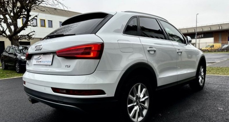 Audi Q3 2.0 TDI 150CH ULTRA AMBIENTE + TOIT OUVRANT, (4×4 Tout terrain), BLANC, 8cv, 5 portes, mise en circulation le 15-09-2017, garantie 12 mois (12 MOIS). 5 places, couleur intérieur : GRIS, boîte de vitesse : manuelle OPTIONS ET EQUIPEMENTS : Kilométrage garanti. ?? CONTACT PAR TELEPHONE RECOMMANDÉ ?? ?? - Découvrez nos offres de crédit simplifiées ou LOA pour ce véhicule (selon éligibilité) - VÉHICULE VISIBLE SUR PARIS SUD - Fresnes (94), Zone Commerciale La Cerisaie. ?? LIVRAISON A DOMICILE POSSIBLE EN FRANCE METROPOLITAINE, hors Corse ?? PRESENTATION VIDEO possible pour nos clients hors région Contactez-nous 7j/7 de 9h à 20h ?? Nous vous recevons sur rendez-vous du mardi au samedi de 10h00 à 19h00 EDN AUTOS L’Automobile, en toute Simplicité ————————————————————————————— Audi Q3 - 5 Portes Diesel - Boite manuelle x6 2,0l TDI 150ch Ambiente BVM6 Moteur à chaîne de distribution M.E.C : 09/2017 Crit’Air 2 ?? 115 000 kms certifiés d’origine ?? Travaux récents : révision complète, pneus & freins ? Historique d’entretien complet fourni ? Garantie 12 mois, extensible à 4 ans ?avec le Leader européen de la garantie des constructeurs ??? Nos engagements : ?? Excellent état mécanique / carrosserie ?? Aucun frais à prévoir ?? Excellent comportement routier ????Prix : 16 490€ ———————————————————————————— ?? 97 Équipements & options Extérieur et Chassis * Différentiel à glissement limité avant * Rétroviseurs extérieurs réglage électrique * Roue de secours * Phares à allumage automatique * Rétroviseurs extérieurs chauffants * Ampoules de phares bi-xénon * Freins régénérateurs * Feux arrières à LED * Rétroviseurs rabattables électriquement * Aide parking * Barres de toit * Frein de parking automatique * Hayon électrique * Jantes alu * Jantes alu 17 * Lunette arrière dégivrante * Pack city * Pack visibilité * Radar de recul * Rétroviseurs électriques et dégivrants * Toit ouvrant électrique * Toit ouvrant panoramique Intérieur * Volant cuir * Système audio carte digitale, CD * Ordinateur de bord * Air conditionné auto * Tapis de sol * Ouverture du coffre à distance * Accoudoir central avant * Système audio lecteur CD et MP3 * Rétroviseur jour/nuit * Volant multi-fonction * Bluetooth inclut musique en streaming, connexion téléphone * Bluetooth * 8 haut-parleurs * Régulateur de vitesse * Air conditionné 2 zones * Réglage du volant en hauteur, en profondeur * Taille écran multi-fonctions 6.5 pouces * 4 vitres électriques * Banquette 1/3 - 2/3 * Banquette fractionnable * Banquette rabattable * Boite 6 vitesses * Cache bagages * Climatisation * Climatisation automatique * Climatisation automatique multi zone * Configuration 5PL * Couvre bagages * Direction assistée * Éclairage intérieur temporisé * Fermeture électrique * Fermeture électrique automatique * Kit téléphone main libre * Pack chrome * Pack clim * Pack confort * Pack multimédia * Prise 12V * Prise audio USB * Prises audio auxiliaires * Régulateur limiteur de vitesse * Rétroviseur int. jour/nuit auto * Sièges réglables en hauteur * Système audio MP3 * Vitres ar. surteintées * Vitres électriques * Vitres surteintées * Volant multifonctions * Volant réglable en hauteur et profondeur Sécurité * 6 airbags * ESP * Airbags rideaux * Antipatinage * Indicateur de sous-gonflage des pneus * Assistance au freinage d'urgence * ABS * Airbags latéraux * Essuie glace capteur de pluie * Aide au démarrage en côte * Airbags * Projecteurs antibrouillard * Contrôle de pression des pneus * Feux et essuie-glaces automatiques * Fixations ISOFIX * Kit téléphone main libre bluetooth * Pack sécurité * Phares av. de jour * Phares av. de jour à LED Autre * Carnet d'entretien * Extension de garantie constructeur 4 ans * Factures d'entretien * Non fumeur * Peinture métallisée ou nacrée * Système Opensky * Système Start & Stop ———————————————————————————— ?? Livraison à domicile possible dans toute la France ?? Reprise possible de votre ancien véhicule ?? Etablissement de votre carte grise Référence annonce : 243