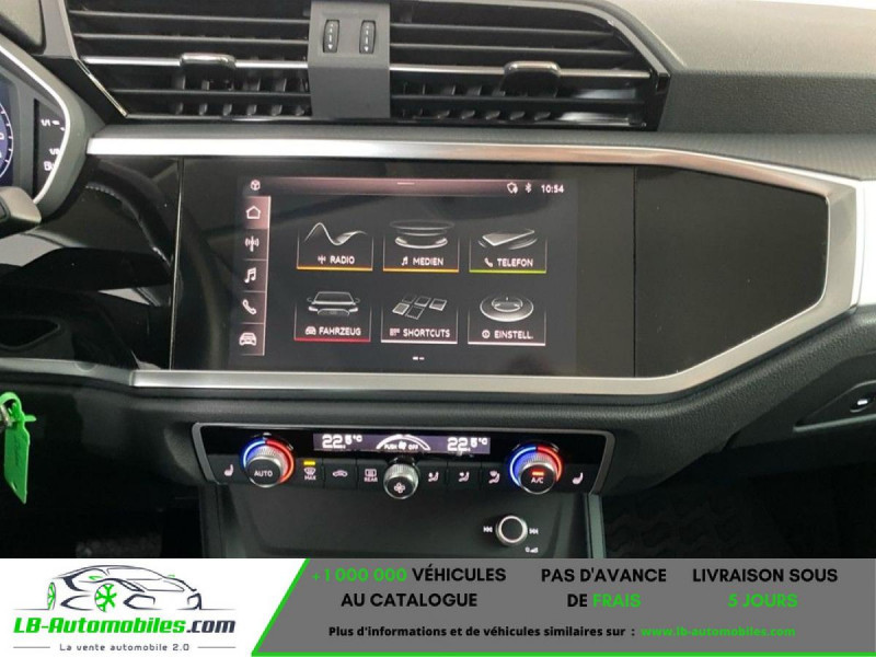 Référence : 1106209 Vos Avantages chez LB-AUTOMOBILES.com / Prix affiché TTC Livré hors carte grise / Livraison sous 10 jours dans toute la France hors 31 / Pas d?avance de frais paiement du véhicule 100% à la livraison par virement. Audi Q3 Neuf remisée, Audi Q3 Occasion Toulouse Beaupuy 31850, Audi Q3 Véhicule sorti de réseau collaborateur, Audi Q3 import, Audi Q3 importateur, Audi Q3 Livraison possible dans toute la France sous 5 jours, Audi Q3, Audi Q3 Location Option Achat, Audi Q3 LLD, Audi Q3 Longue Durée, Audi Q3 TVA récupérable. Possibilité d'extension de garantie 12, 24,36 mois, Pour tout autres voitures import neufs ou occasions collaborateur fortement remisée, Mandataire Audi, Mandataire BMW, Mandataire Volkswagen, Mandataire Mercedes, Mandataire Peugeot Espagne, Mandataire Renault Espagne, Porsche import, Mandataire Citroën Espagne, Mandataire Seat Espagne, n'hésitez pas à nous contacter. « Sous réserve de vente préalable et erreur de saisie » Principaux équipements : - ABS - Accoudoir - Antidémarrage - Assistance au freinage d'urgence - Assistance de démarrage en côte - Avertisseur de franchissement de ligne - Bluetooth - Capteur de lumière - Capteur de pluie - Carnet d'entretien - Cockpit numérique - Commande vocale - Contrôle de la pression des pneus - Direction assistée - ESP - Feux de jour LED - Galerie de toit - Garantie - Isofix - Jantes alliage - Kit de réparation d'urgence des pneus - Kit mains libres - Ordinateur de bord - Phares LED - Pneus toutes saisons - Port USB - Radio DAB - Rétroviseur extérieur électrique - Rétroviseur intérieur anti-éblouissement automatique - Rétroviseurs extérieurs rabattables électriquement - Sièges chauffants - Streaming musical intégré - Système antipatinage - Système d'appel d'urgence - Système de limitation de la vitesse - Système Stop & Start - Traction avant - Tuner/radio - Véhicule non-fumeur - Vitres électriques - Volant en cuir - Volant multifonction - WLAN / point d'accès Wi-Fi