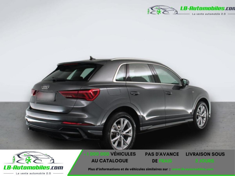 Référence : 1104425 Vos Avantages chez LB-AUTOMOBILES.com / Prix affiché TTC Livré hors carte grise / Livraison sous 10 jours dans toute la France hors 31 / Pas d?avance de frais paiement du véhicule 100% à la livraison par virement. Audi Q3 Neuf remisée, Audi Q3 Occasion Toulouse Beaupuy 31850, Audi Q3 Véhicule sorti de réseau collaborateur, Audi Q3 import, Audi Q3 importateur, Audi Q3 Livraison possible dans toute la France sous 5 jours, Audi Q3, Audi Q3 Location Option Achat, Audi Q3 LLD, Audi Q3 Longue Durée, Audi Q3 TVA récupérable. Possibilité d'extension de garantie 12, 24,36 mois, Pour tout autres voitures import neufs ou occasions collaborateur fortement remisée, Mandataire Audi, Mandataire BMW, Mandataire Volkswagen, Mandataire Mercedes, Mandataire Peugeot Espagne, Mandataire Renault Espagne, Porsche import, Mandataire Citroën Espagne, Mandataire Seat Espagne, n'hésitez pas à nous contacter. « Sous réserve de vente préalable et erreur de saisie » Principaux équipements : - ABS - Accoudoir - Android Auto - Antidémarrage - Apple CarPlay - Assistance au freinage d'urgence - Assistance de démarrage en côte - Bluetooth - Capteur de lumière - Capteur de pluie - Carnet d'entretien - Cockpit numérique - Contrôle de la pression des pneus - Diesel avec filtre à particules - Direction assistée - Éclairage d'ambiance - ESP - Fermeture centralisée - Feux de jour LED - Galerie de toit - Garantie - GPS - Hayon électrique - Jantes alliage - Kit de réparation d'urgence des pneus - Kit mains libres - Ordinateur de bord - Phares LED - Pneus toutes saisons - Préparation de l'attache remorque - Radio DAB - Régulateur de vitesse - Rétroviseur extérieur électrique - Sièges chauffants - Support lombaire - Suspension sport - Système antipatinage - Système d'appel d'urgence - Système d'avertissement de la distance - Système de reconnaissance des panneaux de signalisation - Système Stop & Start - Traction avant - Tuner/radio - Véhicule non-fumeur - Verrouillage centralisé sans clé - Vitres électriques - Volant en cuir - Volant multifonction