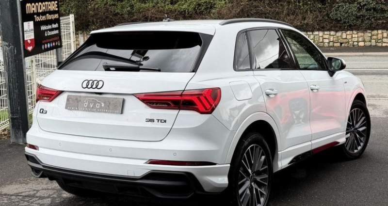 Dominique Vivier Automobiles vous propose à la vente ce magnifique Audi Q3 S-Line : ?? 2.0 TDI 150 ch ; ?? Boîte automatique S Tronic 7 ; ? Mise en circulation le 18/03/2022 ; ?? Avec 37 500 km ; ? Suivi d'entretien Audi ; Garantie intégrale pendant 12 mois et configurée comme suit : Audio - Télécommunications : CarPlay Appel d'Urgence Localisé GPS Bluetooth Prise USB Conduite : Aide au démarrage en côte Modes de conduite Régulateur / Limiteur de vitesse Extérieur : Pack sport black + Feux arrière à LED Phares avant LED Radar de stationnement AV / AR Caméra de recul Rétroviseurs dégivrants Rétroviseurs rabattables automatique Coffre électrique Intérieur : Sellerie full cuir Éclairage d’ambiance multicolore Banquette coulissante Clim automatique bi-zones Eclairage d’ambiance Fixation Isofix siège passager avant Fixations Isofix aux places arrières Ordinateur de bord Sièges AV avec réglage lombaire Sécurité : Reconnaissance panneaux de signalisation Freinage automatique d'urgence Système de prévention des collisions Véhicule en parfait état, révisé et garanti 12 mois Véhicule en stock, disponible immédiatement Financement et reprise possible Dominique Vivier Automobiles Mandataire Vente Achat Reprise Crédit Dépôt Vente DVA 127 Rue René Wallard 62700 Bruay-la-Buissière -> À 45 minutes de l’aéroport de Lille-Lesquin -> À 35 minutes de la gare d’Arras -> À 15 minutes de la gare de Béthune Transport assuré par nos soins