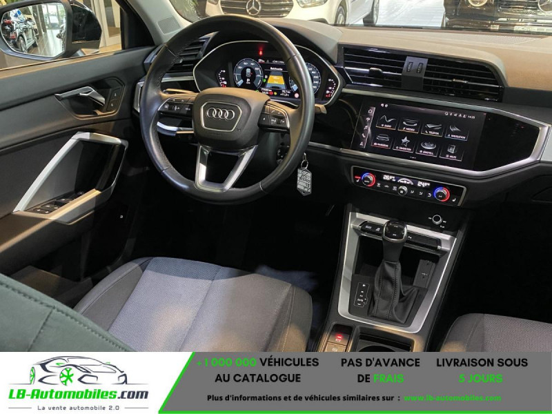 Référence : 1115393 Vos Avantages chez LB-AUTOMOBILES.com / Prix affiché TTC Livré hors carte grise / Livraison sous 10 jours dans toute la France hors 31 / Pas d?avance de frais paiement du véhicule 100% à la livraison par virement. Audi Q3 Neuf remisée, Audi Q3 Occasion Toulouse Beaupuy 31850, Audi Q3 Véhicule sorti de réseau collaborateur, Audi Q3 import, Audi Q3 importateur, Audi Q3 Livraison possible dans toute la France sous 5 jours, Audi Q3, Audi Q3 Location Option Achat, Audi Q3 LLD, Audi Q3 Longue Durée, Audi Q3 TVA récupérable. Possibilité d'extension de garantie 12, 24,36 mois, Pour tout autres voitures import neufs ou occasions collaborateur fortement remisée, Mandataire Audi, Mandataire BMW, Mandataire Volkswagen, Mandataire Mercedes, Mandataire Peugeot Espagne, Mandataire Renault Espagne, Porsche import, Mandataire Citroën Espagne, Mandataire Seat Espagne, n'hésitez pas à nous contacter. « Sous réserve de vente préalable et erreur de saisie » Principaux équipements : - ABS - Accoudoir - Antidémarrage - Assistance au freinage d'urgence - Assistance de démarrage en côte - Avertisseur de franchissement de ligne - Bluetooth - Capteur de lumière - Capteur de pluie - Chauffage auxiliaire - Cockpit numérique - Commande vocale - Contrôle de la pression des pneus - Direction assistée - Écran tactile - ESP - Fermeture centralisée - Feux de jour LED - Galerie de toit - GPS - Isofix - Jantes alliage - Kit de réparation d'urgence des pneus - Kit mains libres - Lecteur CD - Package hiver - Phares LED - Pneus été - Port USB - Radio DAB - Régulateur de vitesse - Rétroviseur extérieur électrique - Rétroviseur intérieur anti-éblouissement automatique - Rétroviseurs extérieurs rabattables électriquement - Sièges chauffants - Support lombaire - Système antipatinage - Système d'alarme - Système d'appel d'urgence - Système de détection de la fatigue - Système de limitation de la vitesse - Système de sonorisation - Système Stop & Start - Traction avant - Trappe à skis - Tuner/radio - Véhicule non-fumeur - Vitres électriques - Volant en cuir - Volant multifonction