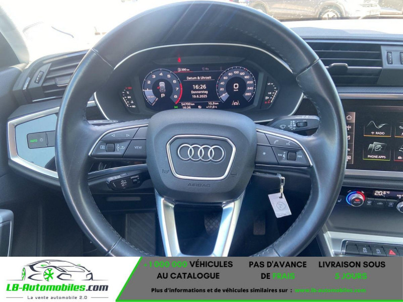 Référence : 1108335 Vos Avantages chez LB-AUTOMOBILES.com / Prix affiché TTC Livré hors carte grise / Livraison sous 10 jours dans toute la France hors 31 / Pas d?avance de frais paiement du véhicule 100% à la livraison par virement. Audi Q3 Neuf remisée, Audi Q3 Occasion Toulouse Beaupuy 31850, Audi Q3 Véhicule sorti de réseau collaborateur, Audi Q3 import, Audi Q3 importateur, Audi Q3 Livraison possible dans toute la France sous 5 jours, Audi Q3, Audi Q3 Location Option Achat, Audi Q3 LLD, Audi Q3 Longue Durée, Audi Q3 TVA récupérable. Possibilité d'extension de garantie 12, 24,36 mois, Pour tout autres voitures import neufs ou occasions collaborateur fortement remisée, Mandataire Audi, Mandataire BMW, Mandataire Volkswagen, Mandataire Mercedes, Mandataire Peugeot Espagne, Mandataire Renault Espagne, Porsche import, Mandataire Citroën Espagne, Mandataire Seat Espagne, n'hésitez pas à nous contacter. « Sous réserve de vente préalable et erreur de saisie » Principaux équipements : - ABS - Accoudoir - Android Auto - Antidémarrage - Apple CarPlay - Assistance au freinage d'urgence - Assistance de démarrage en côte - Assistant d'angle mort - Attache remorque pivotante - Avertisseur de franchissement de ligne - Bluetooth - Capteur de lumière - Capteur de pluie - Carnet d'entretien - Cockpit numérique - Commande vocale - Contrôle de la pression des pneus - Diesel avec filtre à particules - Direction assistée - Écran tactile - ESP - Fermeture centralisée - Feux de jour - Galerie de toit - Garantie - GPS - Grille de protection pour coffre - Isofix - Jantes alliage - Kit mains libres - Ordinateur de bord - Package hiver - Phares LED - Pneus été - Port USB - Régulateur de vitesse adaptatif - Rétroviseur extérieur électrique - Sièges chauffants - Streaming musical intégré - Système antipatinage - Système d'appel d'urgence - Système d'avertissement de la distance - Système de détection de la fatigue - Système de limitation de la vitesse - Système Stop & Start - Traction avant - Tuner/radio - Véhicule non-fumeur - Vitres électriques - Vitres teintées - Volant en cuir - Volant multifonction
