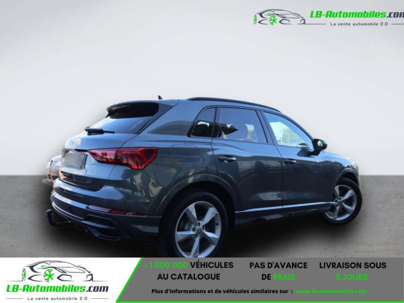 Référence : 1123292 Vos Avantages chez LB-AUTOMOBILES.com / Prix affiché TTC Livré hors carte grise / Livraison sous 10 jours dans toute la France hors 31 / Pas d?avance de frais paiement du véhicule 100% à la livraison par virement. Audi Q3 Neuf remisée, Audi Q3 Occasion Toulouse Beaupuy 31850, Audi Q3 Véhicule sorti de réseau collaborateur, Audi Q3 import, Audi Q3 importateur, Audi Q3 Livraison possible dans toute la France sous 5 jours, Audi Q3, Audi Q3 Location Option Achat, Audi Q3 LLD, Audi Q3 Longue Durée, Audi Q3 TVA récupérable. Possibilité d'extension de garantie 12, 24,36 mois, Pour tout autres voitures import neufs ou occasions collaborateur fortement remisée, Mandataire Audi, Mandataire BMW, Mandataire Volkswagen, Mandataire Mercedes, Mandataire Peugeot Espagne, Mandataire Renault Espagne, Porsche import, Mandataire Citroën Espagne, Mandataire Seat Espagne, n'hésitez pas à nous contacter. « Sous réserve de vente préalable et erreur de saisie » Principaux équipements : - 4x4 - ABS - Accoudoir - Android Auto - Antidémarrage - Apple CarPlay - Assistance au freinage d'urgence - Assistance de démarrage en côte - Assistant d'angle mort - Assistant de man?uvre avec remorque - Assistant feux de route - Attache remorque détachable - Avertisseur de franchissement de ligne - Bluetooth - Capteur de lumière - Capteur de pluie - Carnet d'entretien - Chargement par induction pour smartphones - Cockpit numérique - Commande vocale - Contrôle de la pression des pneus - Diesel avec filtre à particules - Direction assistée - Éclairage adaptatif de virage - Éclairage d'ambiance - Éclairage route non éblouissant - Écran tactile - ESP - Fermeture centralisée - Feux de jour LED - Garantie - GPS - Grille de protection pour coffre - Hayon électrique - Isofix - Jantes alliage - Kit de préparation pour système de navigation - Kit de réparation d'urgence des pneus - Kit mains libres - Ordinateur de bord - Package hiver - Pack sport - Phare antibrouillard - Phares LED - Pneus été - Port USB - Réglage électrique des sièges - Régulateur de vitesse adaptatif - Rétroviseur extérieur électrique - Rétroviseur intérieur anti-éblouissement automatique - Rétroviseurs extérieurs rabattables électriquement - Sièges chauffants - Sièges sport - Support lombaire - Suspension sport - Système antipatinage - Système d'alarme - Système d'appel d'urgence - Système d'avertissement de la distance - Système de détection de la fatigue - Système de limitation de la vitesse - Système de nettoyage des phares - Système de reconnaissance des panneaux de signalisation - Système de sonorisation - Système Stop & Start - Trappe à skis - Tuner/radio - Véhicule non-fumeur - Vitres électriques - Vitres teintées - Volant en cuir - Volant multifonction