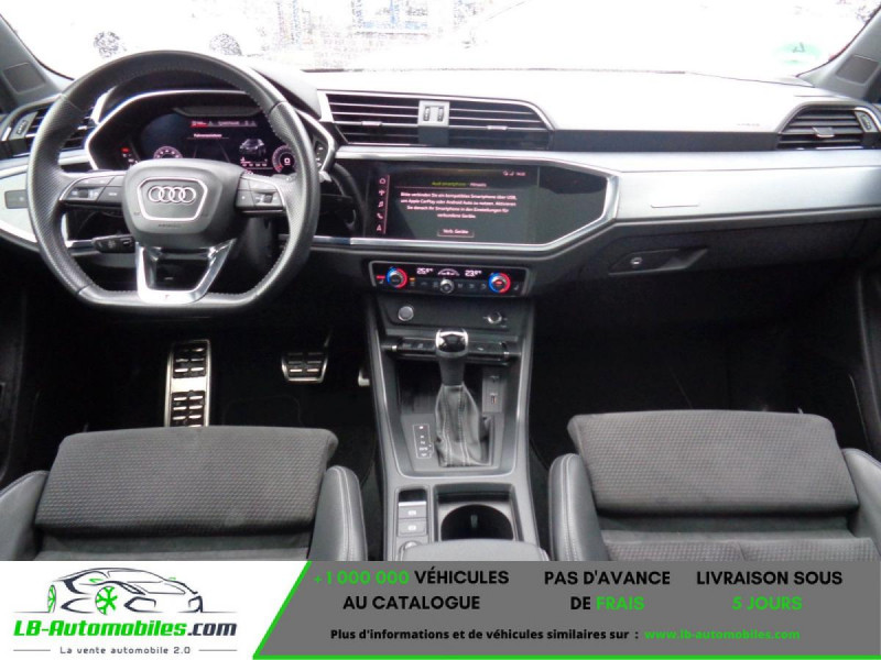 Référence : 1123299 Vos Avantages chez LB-AUTOMOBILES.com / Prix affiché TTC Livré hors carte grise / Livraison sous 10 jours dans toute la France hors 31 / Pas d?avance de frais paiement du véhicule 100% à la livraison par virement. Audi Q3 Neuf remisée, Audi Q3 Occasion Toulouse Beaupuy 31850, Audi Q3 Véhicule sorti de réseau collaborateur, Audi Q3 import, Audi Q3 importateur, Audi Q3 Livraison possible dans toute la France sous 5 jours, Audi Q3, Audi Q3 Location Option Achat, Audi Q3 LLD, Audi Q3 Longue Durée, Audi Q3 TVA récupérable. Possibilité d'extension de garantie 12, 24,36 mois, Pour tout autres voitures import neufs ou occasions collaborateur fortement remisée, Mandataire Audi, Mandataire BMW, Mandataire Volkswagen, Mandataire Mercedes, Mandataire Peugeot Espagne, Mandataire Renault Espagne, Porsche import, Mandataire Citroën Espagne, Mandataire Seat Espagne, n'hésitez pas à nous contacter. « Sous réserve de vente préalable et erreur de saisie » Principaux équipements : - 4x4 - ABS - Accoudoir - Android Auto - Antidémarrage - Apple CarPlay - Assistance au freinage d'urgence - Assistance de démarrage en côte - Assistant d'angle mort - Assistant de sortie de stationnement - Assistant feux de route - Avertisseur de franchissement de ligne - Bluetooth - Boîte de vitesses robotisée - Capteur de lumière - Capteur de pluie - Carnet d'entretien - Contrôle de la pression des pneus - Direction assistée - Éclairage adaptatif - Éclairage d'ambiance - Éclairage route non éblouissant - ESP - Fermeture centralisée - Feux de jour LED - Galerie de toit - Garantie - GPS - Grille de protection pour coffre - Hayon électrique - Isofix - Jantes alliage - Kit de réparation d'urgence des pneus - Kit mains libres - Ordinateur de bord - Pack sport - Phares LED - Pneus toutes saisons - Point Isofix siège passager - Radio DAB - Réglage électrique des sièges - Régulateur de vitesse adaptatif - Rétroviseur extérieur électrique - Rétroviseur intérieur anti-éblouissement automatique - Rétroviseurs extérieurs rabattables électriquement - Révision complète - Sièges chauffants - Sièges sport - Support lombaire - Suspension adaptative - Système antipatinage - Système d'alarme - Système d'appel d'urgence - Système d'avertissement de la distance - Système de détection de la fatigue - Système de limitation de la vitesse - Système de reconnaissance des panneaux de signalisation - Système de sonorisation - Système Stop & Start - Toit panoramique - Tuner/radio - Véhicule non-fumeur - Verrouillage centralisé sans clé - Vitres électriques - Vitres teintées - Volant en cuir - Volant multifonction