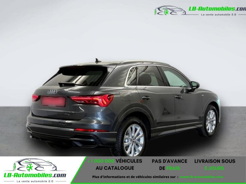 Référence : 1126232 Vos Avantages chez LB-AUTOMOBILES.com / Prix affiché TTC Livré hors carte grise / Livraison sous 10 jours dans toute la France hors 31 / Pas d?avance de frais paiement du véhicule 100% à la livraison par virement. Audi Q3 Neuf remisée, Audi Q3 Occasion Toulouse Beaupuy 31850, Audi Q3 Véhicule sorti de réseau collaborateur, Audi Q3 import, Audi Q3 importateur, Audi Q3 Livraison possible dans toute la France sous 5 jours, Audi Q3, Audi Q3 Location Option Achat, Audi Q3 LLD, Audi Q3 Longue Durée, Audi Q3 TVA récupérable. Possibilité d'extension de garantie 12, 24,36 mois, Pour tout autres voitures import neufs ou occasions collaborateur fortement remisée, Mandataire Audi, Mandataire BMW, Mandataire Volkswagen, Mandataire Mercedes, Mandataire Peugeot Espagne, Mandataire Renault Espagne, Porsche import, Mandataire Citroën Espagne, Mandataire Seat Espagne, n'hésitez pas à nous contacter. « Sous réserve de vente préalable et erreur de saisie » Principaux équipements : - ABS - Accoudoir - Antidémarrage - Assistance au freinage d'urgence - Assistance de démarrage en côte - Avertisseur de franchissement de ligne - Bluetooth - Capteur de lumière - Capteur de pluie - Cockpit numérique - Commande vocale - Contrôle de la pression des pneus - Diesel avec filtre à particules - Direction assistée - Écran tactile - ESP - Fermeture centralisée - Feux de jour LED - Galerie de toit - GPS - Hayon électrique - Isofix - Jantes alliage - Kit mains libres - Ordinateur de bord - Phares LED - Pneus toutes saisons - Port USB - Radio DAB - Régulateur de vitesse - Rétroviseur intérieur anti-éblouissement automatique - Sièges chauffants - Sièges sport - Support lombaire - Suspension sport - Système antipatinage - Système d'appel d'urgence - Système d'avertissement de la distance - Système de limitation de la vitesse - Système de nettoyage des phares - Système Stop & Start - Traction avant - Tuner/radio - Vitres électriques - Vitres teintées - Volant chauffant - Volant en cuir - Volant multifonction
