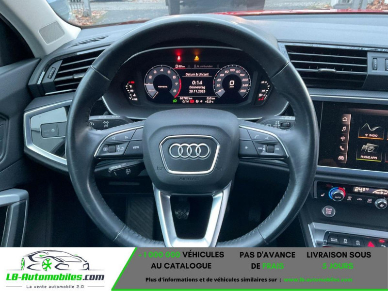 Référence : 1131895 Vos Avantages chez LB-AUTOMOBILES.com / Prix affiché TTC Livré hors carte grise / Livraison sous 10 jours dans toute la France hors 31 / Pas d?avance de frais paiement du véhicule 100% à la livraison par virement. Audi Q3 Neuf remisée, Audi Q3 Occasion Toulouse Beaupuy 31850, Audi Q3 Véhicule sorti de réseau collaborateur, Audi Q3 import, Audi Q3 importateur, Audi Q3 Livraison possible dans toute la France sous 5 jours, Audi Q3, Audi Q3 Location Option Achat, Audi Q3 LLD, Audi Q3 Longue Durée, Audi Q3 TVA récupérable. Possibilité d'extension de garantie 12, 24,36 mois, Pour tout autres voitures import neufs ou occasions collaborateur fortement remisée, Mandataire Audi, Mandataire BMW, Mandataire Volkswagen, Mandataire Mercedes, Mandataire Peugeot Espagne, Mandataire Renault Espagne, Porsche import, Mandataire Citroën Espagne, Mandataire Seat Espagne, n'hésitez pas à nous contacter. « Sous réserve de vente préalable et erreur de saisie » Principaux équipements : - ABS - Accoudoir - Android Auto - Antidémarrage - Apple CarPlay - Assistance de démarrage en côte - Assistant de sortie de stationnement - Assistant de vision nocturne - Assistant feux de route - Avertisseur de franchissement de ligne - Bluetooth - Capteur de lumière - Capteur de pluie - Carnet d'entretien - Chargement par induction pour smartphones - Cockpit numérique - Commande vocale - Contrôle de la pression des pneus - Éclairage d'ambiance - Éclairage route non éblouissant - Écran tactile - ESP - Fermeture centralisée - Feux de jour LED - GPS - Grille de protection pour coffre - Isofix - Jantes alliage - Kit de préparation pour système de navigation - Kit mains libres - Lecteur CD - Ordinateur de bord - Pack sport - Phare antibrouillard - Phares LED - Pneus été - Port USB - Radio DAB - Régulateur de vitesse - Rétroviseur extérieur électrique - Rétroviseur intérieur anti-éblouissement automatique - Rétroviseurs extérieurs rabattables électriquement - Sièges arrières chauffants électriques - Sièges chauffants - Sièges sport - Streaming musical intégré - Support lombaire - Suspension sport - Système antipatinage - Système d'alarme - Système d'appel d'urgence - Système de détection de la fatigue - Système de reconnaissance des panneaux de signalisation - Système de sonorisation - Système Stop & Start - Traction avant - Tuner/radio - Véhicule non-fumeur - Verrouillage centralisé sans clé - Vitre chauffante - Vitres électriques - Vitres teintées - Volant en cuir - Volant multifonction