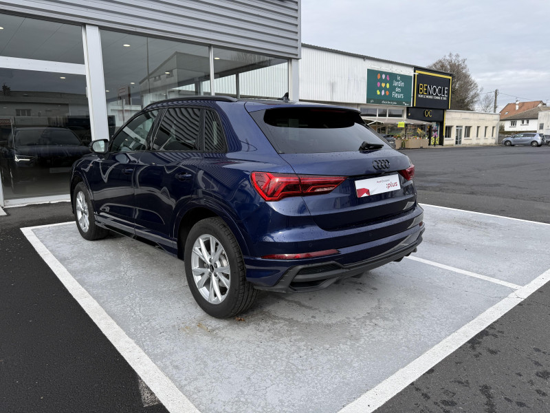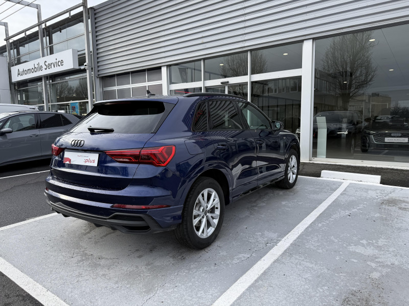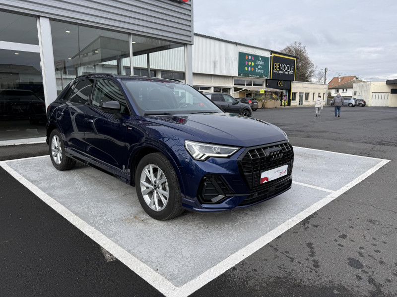 Applications décoratives en aluminium mat Brossé Foncé / Audi Connect Navigation et Divertissement Plus / Audi virtual cockpit / Audi Virtual cockpit plus / Jantes en aluminium coulé 18" 5 branches en V 7Jx18", pneus 235/55 R18 / MMI Navigation plus avec MMI touch / Pack Aluminium Intérieur / Phares à LED avec clignotants dynamiques AR / Rétroviseur intérieur jour/nuit automatique sans encadrement / Rétroviseurs extérieurs réglables, dégivrants et rabattables électriquement avec fonction rabat automatique / Volant cuir Sport multifonctions Plus 3 branches avec méplat et palettes de commande au volant / 2 prises USB AR (type-C) et prise 12V dans la console centrale AR / Accoudoir central coulissant en longueur, avec inclinaison réglable et vide-poches relevable / Accoudoirs des contre-portes en matériaux synthétiques monopur 550 / Appui lombaire à 4 axes pour les sièges AV, réglage électrique, horizontal et vertical / Assise et dossier de banquette AR, divisée, rabattable 40/20/40, Assise coulissante en longueur, Dossier avec inclinaison réglable / Audi Connect sécurité et assistance en ligne / Audi Drive Select / Audi Hold Assist / Audi Parking System Plus / Audi Pre Sense Basic / Audi Pre Sense front / Audi Smartphone Interface / Avertisseur de franchissement de ligne et avertisseur de changement de voie / Banquette AR avec porte-gobelet dans l'accoudoir de la place centrale / Boîtiers de rétroviseurs extérieurs dans la couleur de la carrosserie / Ciel de pavillon en tissu noir / Clé confort incluant déverrouillage du coffre par capteur (sans Safelock) / Cléà fréquence radio / Câbles de recharge pour téléphone portable, compatibles iPhone et Android / Direction assistée électromécanique, asservie à la vitesse / Détecteur de pluie et de luminosité / Eclairage intérieur / Ecrous de roues antivol / Fixation pour sièges enfants ISOFIX et Top Tether pour les sièges extérieurs AR / Hayon assistéélectriquement pour l'ouverture et la fermeture / Interface Bluetooth / Kit réparation / Outillage de bord / Pare-brise en verre acoustique avec verre feuilleté athermique / Pare-chocs S line dans une peinture intégrale (couleur de la carrosserie) / Rampes de pavillon Noires / Régulateur de vitesse (fonctionne entre 20 et 250 km/h) / Sièges AV réglables manuellement: Hauteur et positionnement en longueur, Inclinaison de dossier, Hauteur des appuie-tête et des ceintures / Suppression totale d'identification (modèle et moteur) / Suspensions Sport / Système de lecture des panneaux de signalisation par caméra / Trousse de secours, triangle de présignalisation et 2 vestes de sécurité / Vitrage Privacy : lunette AR, vitres de portières AR et vitres latérales AR surteintées