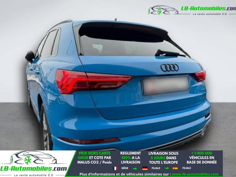Référence : 1135501 Vos Avantages chez LB-AUTOMOBILES.com / Prix affiché TTC Livré hors carte grise / Livraison sous 10 jours dans toute la France hors 31 / Pas d?avance de frais paiement du véhicule 100% à la livraison par virement. Audi Q3 Neuf remisée, Audi Q3 Occasion Toulouse Beaupuy 31850, Audi Q3 Véhicule sorti de réseau collaborateur, Audi Q3 import, Audi Q3 importateur, Audi Q3 Livraison possible dans toute la France sous 5 jours, Audi Q3, Audi Q3 Location Option Achat, Audi Q3 LLD, Audi Q3 Longue Durée, Audi Q3 TVA récupérable. Possibilité d'extension de garantie 12, 24,36 mois, Pour tout autres voitures import neufs ou occasions collaborateur fortement remisée, Mandataire Audi, Mandataire BMW, Mandataire Volkswagen, Mandataire Mercedes, Mandataire Peugeot Espagne, Mandataire Renault Espagne, Porsche import, Mandataire Citroën Espagne, Mandataire Seat Espagne, n'hésitez pas à nous contacter. « Sous réserve de vente préalable et erreur de saisie » Principaux équipements : - 4x4 - ABS - Accoudoir - Antidémarrage - Assistance au freinage d'urgence - Assistance de démarrage en côte - Bluetooth - Capteur de lumière - Capteur de pluie - Carnet d'entretien - Cockpit numérique - Commande vocale - Contrôle de la pression des pneus - Direction assistée - Éclairage d'ambiance - Fermeture centralisée - Feux de jour - Galerie de toit - GPS - Isofix - Jantes alliage - Kit de réparation d'urgence des pneus - Kit mains libres - Lecteur CD - Phares LED - Point Isofix siège passager - Port USB - Radio DAB - Régulateur de vitesse - Rétroviseur extérieur électrique - Rétroviseur intérieur anti-éblouissement automatique - Rétroviseurs extérieurs rabattables électriquement - Sièges chauffants - Sièges sport - Support lombaire - Suspension sport - Système d'appel d'urgence - Système de limitation de la vitesse - Système de reconnaissance des panneaux de signalisation - Système de sonorisation - Système Stop & Start - Tuner/radio - Véhicule non-fumeur - Verrouillage centralisé sans clé - Vitres électriques - Vitres teintées - Volant en cuir - Volant multifonction
