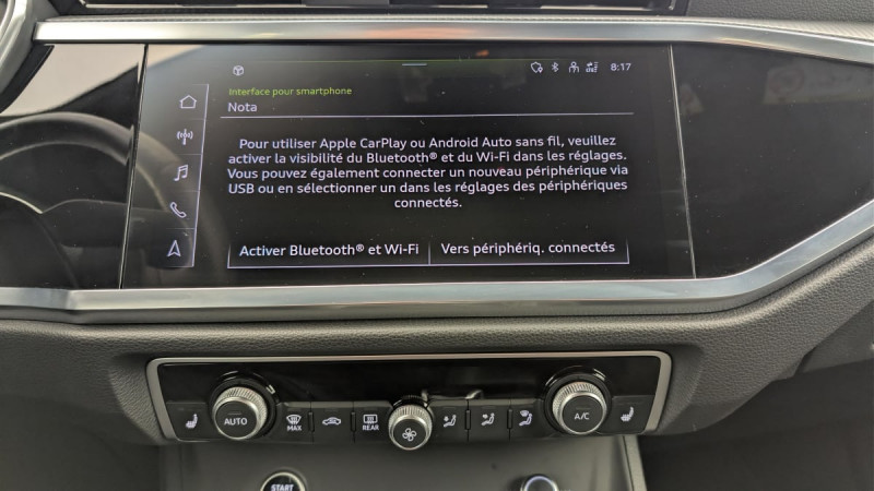 Audi Pre Sense front / Hayon assistéélectriquement pour l'ouverture et la fermeture / Audi Pre Sense Basic / Audi Hold Assist / Audi Parking System Plus / Audi Smartphone Interface / Tapis de sol AV/AR / Détecteur de pluie et de luminosité / Volant cuir multifonctions Plus 3 branches avec palettes de commande au volant / Audi Connect Navigation et Divertissement / Rétroviseur intérieur jour/nuit automatique sans encadrement / Sièges AV réglables manuellement: Hauteur et positionnement en longueur, Inclinaison de dossier, Hauteur des appuie-tête et des ceintures / Phares AV à LED (feux de croisement, feux de route, feux diurnes et feux de position LED, clignotants à ampoule) / Fixation pour sièges enfants ISOFIX et Top Tether pour les sièges extérieurs AR / Kit réparation / Pack Sécurité : Sécurité enfant électrique Fixation pour siège-enfant ISOFIX pour le siège du passager AV Commande de désactivation de l'airbag passager AV / Accoudoir central coulissant en longueur, avec inclinaison réglable et vide-poches relevable / Assise et dossier de banquette AR, divisée, rabattable 40/20/40, Assise coulissante en longueur, Dossier avec inclinaison réglable / Avertisseur de franchissement de ligne et avertisseur de changement de voie / Appui lombaire à 4 axes pour les sièges AV, réglage électrique, horizontal et vertical / / Véhicules équivalents: X3, Tiguan