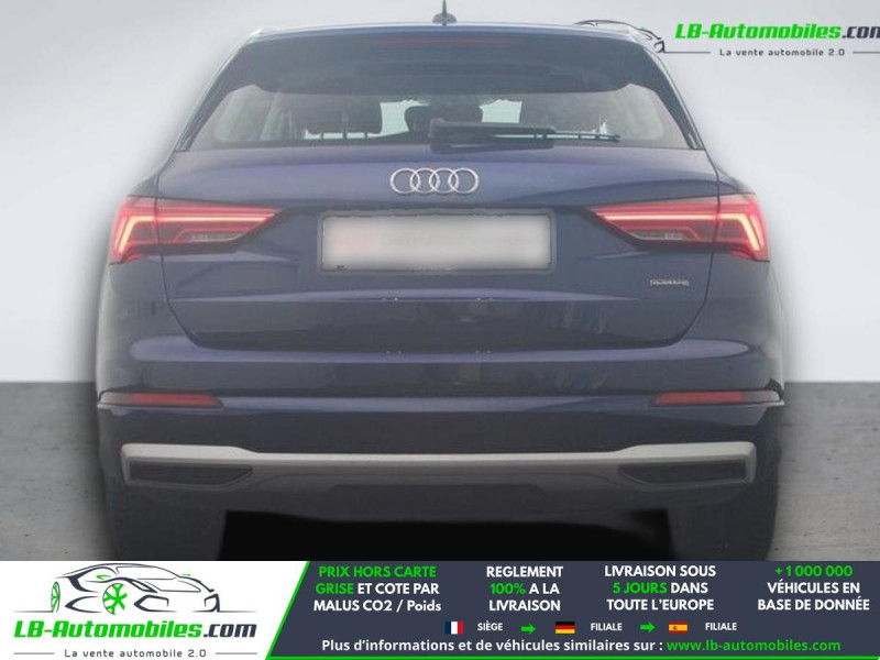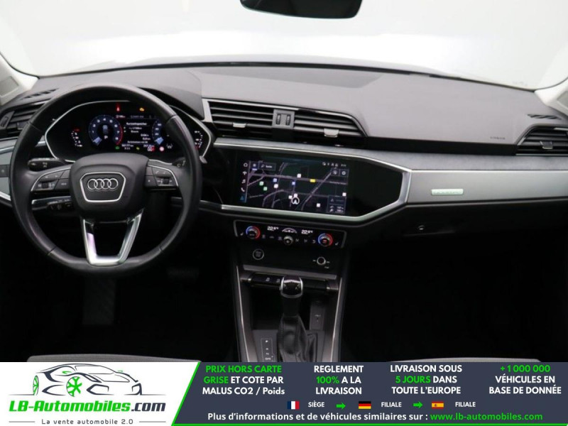 Référence : 1161890 Vos Avantages chez LB-AUTOMOBILES.com / Prix affiché TTC Livré hors carte grise / Livraison sous 10 jours dans toute la France hors 31 / Pas d?avance de frais paiement du véhicule 100% à la livraison par virement. Audi Q3 Neuf remisée, Audi Q3 Occasion Toulouse Beaupuy 31850, Audi Q3 Véhicule sorti de réseau collaborateur, Audi Q3 import, Audi Q3 importateur, Audi Q3 Livraison possible dans toute la France sous 5 jours, Audi Q3, Audi Q3 Location Option Achat, Audi Q3 LLD, Audi Q3 Longue Durée, Audi Q3 TVA récupérable. Possibilité d'extension de garantie 12, 24,36 mois, Pour tout autres voitures import neufs ou occasions collaborateur fortement remisée, Mandataire Audi, Mandataire BMW, Mandataire Volkswagen, Mandataire Mercedes, Mandataire Peugeot Espagne, Mandataire Renault Espagne, Porsche import, Mandataire Citroën Espagne, Mandataire Seat Espagne, n'hésitez pas à nous contacter. « Sous réserve de vente préalable et erreur de saisie » Principaux équipements : - 4x4 - Android Auto - Apple CarPlay - Assistance de démarrage en côte - Assistant d'angle mort - Assistant feux de route - Avertisseur de franchissement de ligne - Bluetooth - Capteur de lumière - Capteur de pluie - Carnet d'entretien - Cockpit numérique - Commande vocale - Contrôle de la pression des pneus - Éclairage d'ambiance - Fermeture centralisée - Feux de jour LED - Galerie de toit - Garantie - GPS - Hayon électrique - Isofix - Jantes alliage - Kit mains libres - Ordinateur de bord - Phares LED - Pneus toutes saisons - Port USB - Radio DAB - Régulateur de vitesse adaptatif - Rétroviseur extérieur électrique - Rétroviseur intérieur anti-éblouissement automatique - Sièges chauffants - Sièges sport - Support lombaire - Système antipatinage - Système d'avertissement de la distance - Système de reconnaissance des panneaux de signalisation - Système Stop & Start - Toit ouvrant - Toit panoramique - Tuner/radio - Véhicule non-fumeur - Verrouillage centralisé sans clé - Volant en cuir - Volant multifonction