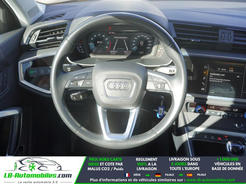 Référence : 1161892 Vos Avantages chez LB-AUTOMOBILES.com / Prix affiché TTC Livré hors carte grise / Livraison sous 10 jours dans toute la France hors 31 / Pas d?avance de frais paiement du véhicule 100% à la livraison par virement. Audi Q3 Neuf remisée, Audi Q3 Occasion Toulouse Beaupuy 31850, Audi Q3 Véhicule sorti de réseau collaborateur, Audi Q3 import, Audi Q3 importateur, Audi Q3 Livraison possible dans toute la France sous 5 jours, Audi Q3, Audi Q3 Location Option Achat, Audi Q3 LLD, Audi Q3 Longue Durée, Audi Q3 TVA récupérable. Possibilité d'extension de garantie 12, 24,36 mois, Pour tout autres voitures import neufs ou occasions collaborateur fortement remisée, Mandataire Audi, Mandataire BMW, Mandataire Volkswagen, Mandataire Mercedes, Mandataire Peugeot Espagne, Mandataire Renault Espagne, Porsche import, Mandataire Citroën Espagne, Mandataire Seat Espagne, n'hésitez pas à nous contacter. « Sous réserve de vente préalable et erreur de saisie » Principaux équipements : - 4x4 - ABS - Accoudoir - Antidémarrage - Assistance de démarrage en côte - Assistant d'angle mort - Avertisseur de franchissement de ligne - Bluetooth - Capteur de lumière - Capteur de pluie - Cockpit numérique - Contrôle de la pression des pneus - Direction assistée - Éclairage d'ambiance - Écran tactile - ESP - Fermeture centralisée - Feux de jour LED - Galerie de toit - Garantie - GPS - Hayon électrique - Isofix - Jantes alliage - Kit mains libres - Ordinateur de bord - Package hiver - Phares LED - Port USB - Radio DAB - Réglage électrique des sièges - Régulateur de vitesse - Rétroviseur extérieur électrique - Rétroviseur intérieur anti-éblouissement automatique - Sièges chauffants - Support lombaire - Système antipatinage - Système d'appel d'urgence - Système de détection de la fatigue - Système de limitation de la vitesse - Système de reconnaissance des panneaux de signalisation - Système de sonorisation - Système Stop & Start - Tuner/radio - Véhicule non-fumeur - Vitres électriques - Volant en cuir - Volant multifonction