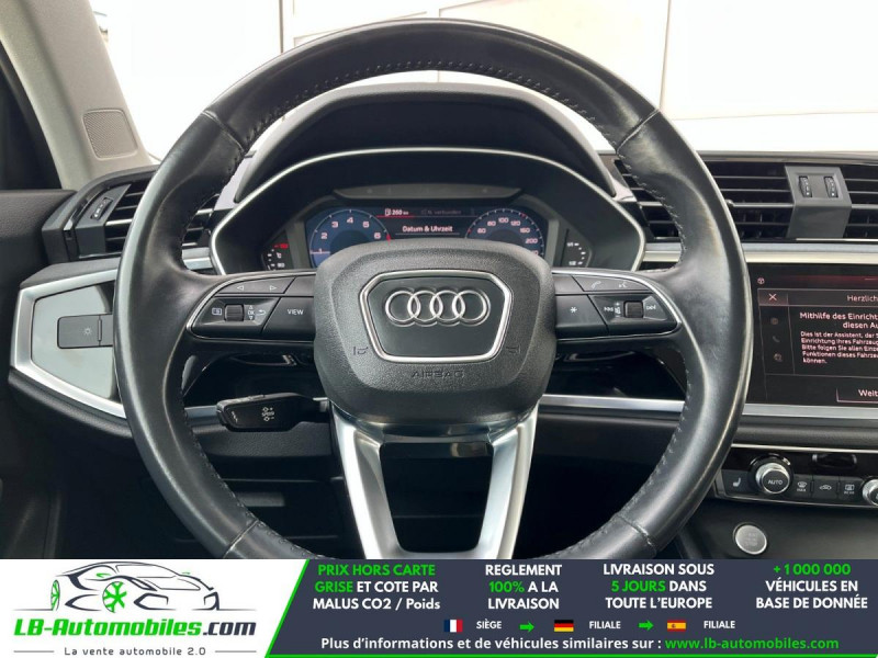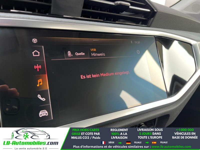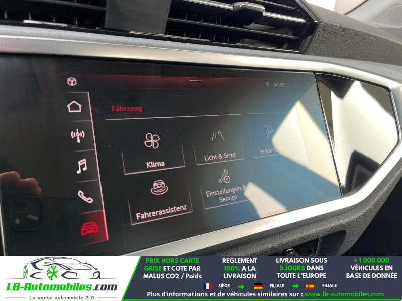 Référence : 1161843 Vos Avantages chez LB-AUTOMOBILES.com / Prix affiché TTC Livré hors carte grise / Livraison sous 10 jours dans toute la France hors 31 / Pas d?avance de frais paiement du véhicule 100% à la livraison par virement. Audi Q3 Neuf remisée, Audi Q3 Occasion Toulouse Beaupuy 31850, Audi Q3 Véhicule sorti de réseau collaborateur, Audi Q3 import, Audi Q3 importateur, Audi Q3 Livraison possible dans toute la France sous 5 jours, Audi Q3, Audi Q3 Location Option Achat, Audi Q3 LLD, Audi Q3 Longue Durée, Audi Q3 TVA récupérable. Possibilité d'extension de garantie 12, 24,36 mois, Pour tout autres voitures import neufs ou occasions collaborateur fortement remisée, Mandataire Audi, Mandataire BMW, Mandataire Volkswagen, Mandataire Mercedes, Mandataire Peugeot Espagne, Mandataire Renault Espagne, Porsche import, Mandataire Citroën Espagne, Mandataire Seat Espagne, n'hésitez pas à nous contacter. « Sous réserve de vente préalable et erreur de saisie » Principaux équipements : - ABS - Accoudoir - Android Auto - Antidémarrage - Apple CarPlay - Assistance au freinage d'urgence - Assistance de démarrage en côte - Assistant d'angle mort - Avertisseur de franchissement de ligne - Bluetooth - Capteur de lumière - Capteur de pluie - Carnet d'entretien - Cockpit numérique - Commande vocale - Diesel avec filtre à particules - Direction assistée - Éclairage d'ambiance - Écran tactile - ESP - Fermeture centralisée - Feux de jour LED - Galerie de toit - Hayon électrique - Isofix - Jantes alliage - Kit de réparation d'urgence des pneus - Kit mains libres - Ordinateur de bord - Phares LED - Pneus été - Point Isofix siège passager - Port USB - Radio DAB - Régulateur de vitesse - Rétroviseur extérieur électrique - Rétroviseur intérieur anti-éblouissement automatique - Rétroviseurs extérieurs rabattables électriquement - Sièges chauffants - Sièges sport - Support lombaire - Système antipatinage - Système d'appel d'urgence - Système d'avertissement de la distance - Système de détection de la fatigue - Système de limitation de la vitesse - Système de reconnaissance des panneaux de signalisation - Système Stop & Start - Traction avant - Tuner/radio - Véhicule non-fumeur - Verrouillage centralisé sans clé - Vitres électriques - Volant en cuir - Volant multifonction