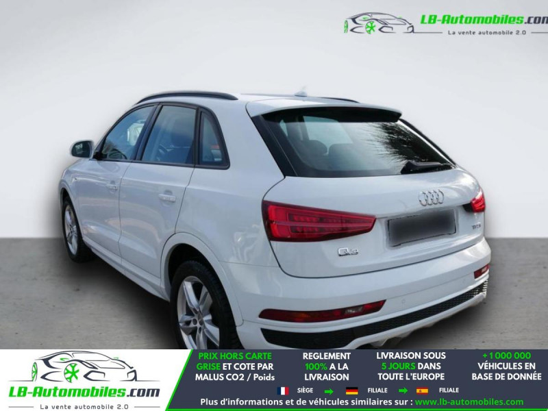 Référence : 1161826 Vos Avantages chez LB-AUTOMOBILES.com / Prix affiché TTC Livré hors carte grise / Livraison sous 10 jours dans toute la France hors 31 / Pas d?avance de frais paiement du véhicule 100% à la livraison par virement. Audi Q3 Neuf remisée, Audi Q3 Occasion Toulouse Beaupuy 31850, Audi Q3 Véhicule sorti de réseau collaborateur, Audi Q3 import, Audi Q3 importateur, Audi Q3 Livraison possible dans toute la France sous 5 jours, Audi Q3, Audi Q3 Location Option Achat, Audi Q3 LLD, Audi Q3 Longue Durée, Audi Q3 TVA récupérable. Possibilité d'extension de garantie 12, 24,36 mois, Pour tout autres voitures import neufs ou occasions collaborateur fortement remisée, Mandataire Audi, Mandataire BMW, Mandataire Volkswagen, Mandataire Mercedes, Mandataire Peugeot Espagne, Mandataire Renault Espagne, Porsche import, Mandataire Citroën Espagne, Mandataire Seat Espagne, n'hésitez pas à nous contacter. « Sous réserve de vente préalable et erreur de saisie » Principaux équipements : - ABS - Accoudoir - Antidémarrage - Assistance de démarrage en côte - Bluetooth - Capteur de lumière - Capteur de pluie - Contrôle de la pression des pneus - Direction assistée - ESP - Fermeture centralisée - Feux de jour LED - Galerie de toit - GPS - Grille de protection pour coffre - Hayon électrique - Isofix - Jantes alliage - Kit de réparation d'urgence des pneus - Kit mains libres - Lecteur CD - Ordinateur de bord - Pack sport - Phares LED - Pneus hiver - Régulateur de vitesse - Rétroviseur extérieur électrique - Sièges chauffants - Système de détection de la fatigue - Système de limitation de la vitesse - Système de nettoyage des phares - Système Stop & Start - Tuner/radio - Véhicule non-fumeur - Vitres électriques - Volant en cuir - Volant multifonction