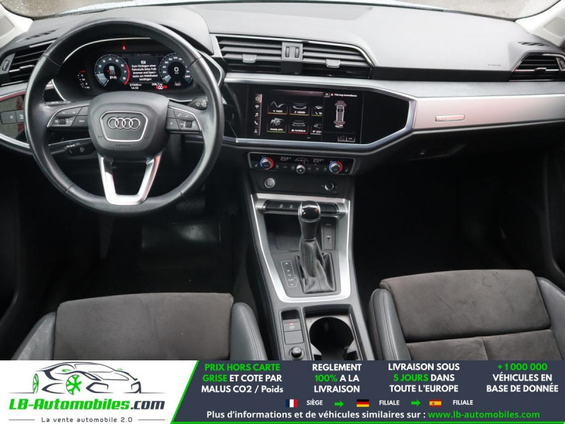 Référence : 1170821 Vos Avantages chez LB-AUTOMOBILES.com / Prix affiché TTC Livré hors carte grise / Livraison sous 10 jours dans toute la France hors 31 / Pas d?avance de frais paiement du véhicule 100% à la livraison par virement. Audi Q3 Neuf remisée, Audi Q3 Occasion Toulouse Beaupuy 31850, Audi Q3 Véhicule sorti de réseau collaborateur, Audi Q3 import, Audi Q3 importateur, Audi Q3 Livraison possible dans toute la France sous 5 jours, Audi Q3, Audi Q3 Location Option Achat, Audi Q3 LLD, Audi Q3 Longue Durée, Audi Q3 TVA récupérable. Possibilité d'extension de garantie 12, 24,36 mois, Pour tout autres voitures import neufs ou occasions collaborateur fortement remisée, Mandataire Audi, Mandataire BMW, Mandataire Volkswagen, Mandataire Mercedes, Mandataire Peugeot Espagne, Mandataire Renault Espagne, Porsche import, Mandataire Citroën Espagne, Mandataire Seat Espagne, n'hésitez pas à nous contacter. « Sous réserve de vente préalable et erreur de saisie » Principaux équipements : - ABS - Accoudoir - Android Auto - Antidémarrage - Apple CarPlay - Assistance de démarrage en côte - Assistant d'angle mort - Attache remorque pivotante - Avertisseur de franchissement de ligne - Bluetooth - Capteur de lumière - Capteur de pluie - Chargement par induction pour smartphones - Cockpit numérique - Commande vocale - Contrôle de la pression des pneus - Direction assistée - Éclairage adaptatif - Éclairage d'ambiance - Éclairage route non éblouissant - Écran tactile - ESP - Fermeture centralisée - Feux de jour LED - Galerie de toit - Garantie - GPS - Isofix - Jantes alliage - Kit mains libres - Ordinateur de bord - Pack sport - Phares LED - Point Isofix siège passager - Port USB - Radio DAB - Réglage électrique des sièges - Régulateur de vitesse - Rétroviseur extérieur électrique - Rétroviseur intérieur anti-éblouissement automatique - Sièges chauffants - Sièges sport - Support lombaire - Système antipatinage - Système d'alarme - Système d'appel d'urgence - Système d'avertissement de la distance - Système de détection de la fatigue - Système de limitation de la vitesse - Système de nettoyage des phares - Système de reconnaissance des panneaux de signalisation - Système de sonorisation - Système Stop & Start - Tuner/radio - Véhicule non-fumeur - Verrouillage centralisé sans clé - Vitres électriques - Vitres teintées - Volant en cuir - Volant multifonction - WLAN / point d'accès Wi-Fi