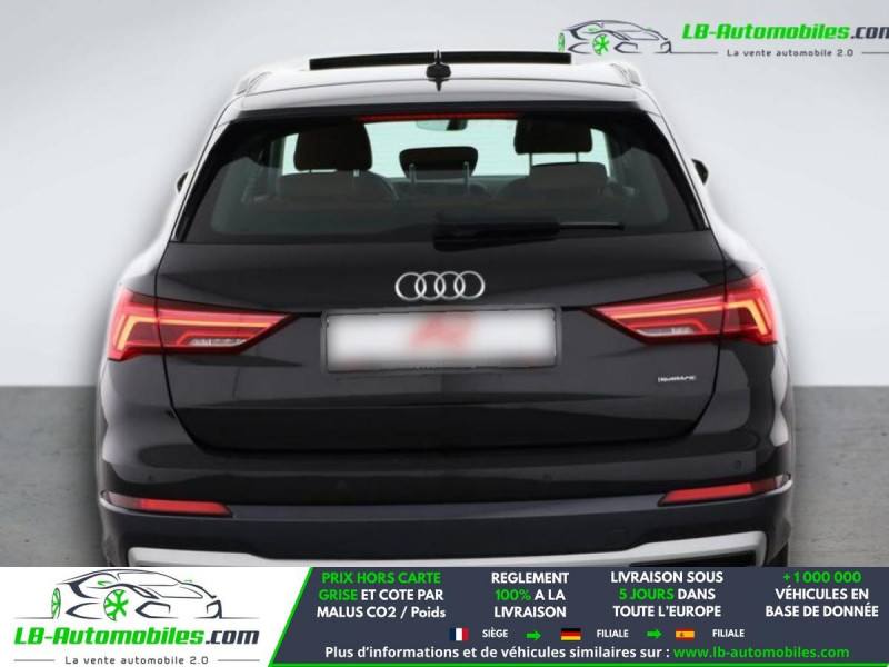 Référence : 1173748 Vos Avantages chez LB-AUTOMOBILES.com / Prix affiché TTC Livré hors carte grise / Livraison sous 10 jours dans toute la France hors 31 / Pas d?avance de frais paiement du véhicule 100% à la livraison par virement. Audi Q3 Neuf remisée, Audi Q3 Occasion Toulouse Beaupuy 31850, Audi Q3 Véhicule sorti de réseau collaborateur, Audi Q3 import, Audi Q3 importateur, Audi Q3 Livraison possible dans toute la France sous 5 jours, Audi Q3, Audi Q3 Location Option Achat, Audi Q3 LLD, Audi Q3 Longue Durée, Audi Q3 TVA récupérable. Possibilité d'extension de garantie 12, 24,36 mois, Pour tout autres voitures import neufs ou occasions collaborateur fortement remisée, Mandataire Audi, Mandataire BMW, Mandataire Volkswagen, Mandataire Mercedes, Mandataire Peugeot Espagne, Mandataire Renault Espagne, Porsche import, Mandataire Citroën Espagne, Mandataire Seat Espagne, n'hésitez pas à nous contacter. « Sous réserve de vente préalable et erreur de saisie » Principaux équipements : - 4x4 - ABS - Accoudoir - Antidémarrage - Assistance au freinage d'urgence - Assistance de démarrage en côte - Assistant d'angle mort - Assistant feux de route - Avertisseur de franchissement de ligne - Bluetooth - Capteur de lumière - Capteur de pluie - Chargement par induction pour smartphones - Chauffage auxiliaire - Cockpit numérique - Commande vocale - Contrôle de la pression des pneus - Direction assistée - Éclairage d'ambiance - Éclairage route non éblouissant - Écran tactile - ESP - Fermeture centralisée - Feux de jour - Galerie de toit - Garantie - GPS - Hayon électrique - Isofix - Jantes alliage - Kit de réparation d'urgence des pneus - Kit mains libres - Ordinateur de bord - Phare antibrouillard - Phares LED - Port USB - Radio DAB - Régulateur de vitesse - Rétroviseur extérieur électrique - Rétroviseur intérieur anti-éblouissement automatique - Sièges chauffants - Streaming musical intégré - Support lombaire - Système antipatinage - Système d'appel d'urgence - Système de détection de la fatigue - Système de limitation de la vitesse - Système de reconnaissance des panneaux de signalisation - Système de sonorisation - Système Stop & Start - Toit ouvrant - Toit panoramique - Tuner/radio - Véhicule non-fumeur - Verrouillage centralisé sans clé - Vitres électriques - Volant en cuir - Volant multifonction