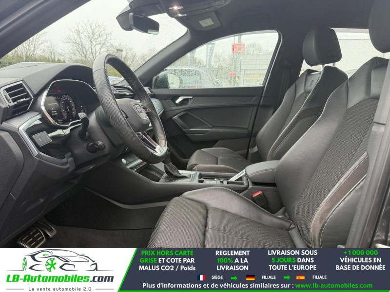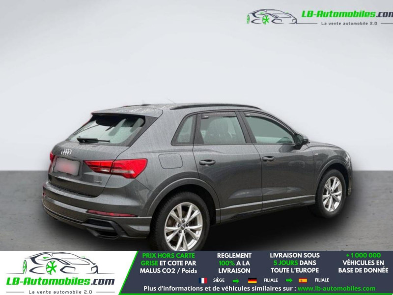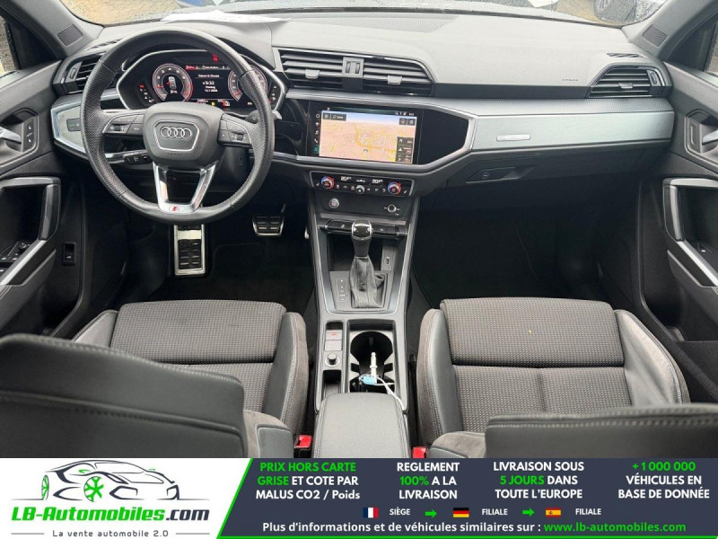 Référence : 1173749 Vos Avantages chez LB-AUTOMOBILES.com / Prix affiché TTC Livré hors carte grise / Livraison sous 10 jours dans toute la France hors 31 / Pas d?avance de frais paiement du véhicule 100% à la livraison par virement. Audi Q3 Neuf remisée, Audi Q3 Occasion Toulouse Beaupuy 31850, Audi Q3 Véhicule sorti de réseau collaborateur, Audi Q3 import, Audi Q3 importateur, Audi Q3 Livraison possible dans toute la France sous 5 jours, Audi Q3, Audi Q3 Location Option Achat, Audi Q3 LLD, Audi Q3 Longue Durée, Audi Q3 TVA récupérable. Possibilité d'extension de garantie 12, 24,36 mois, Pour tout autres voitures import neufs ou occasions collaborateur fortement remisée, Mandataire Audi, Mandataire BMW, Mandataire Volkswagen, Mandataire Mercedes, Mandataire Peugeot Espagne, Mandataire Renault Espagne, Porsche import, Mandataire Citroën Espagne, Mandataire Seat Espagne, n'hésitez pas à nous contacter. « Sous réserve de vente préalable et erreur de saisie » Principaux équipements : - 4x4 - ABS - Accoudoir - Antidémarrage - Assistance au freinage d'urgence - Assistance de démarrage en côte - Assistant d'angle mort - Assistant feux de route - Avertisseur de franchissement de ligne - Bluetooth - Capteur de lumière - Capteur de pluie - Chauffage auxiliaire - Cockpit numérique - Contrôle de la pression des pneus - Diesel avec filtre à particules - Direction assistée - Écran tactile - ESP - Fermeture centralisée - Feux de jour LED - Galerie de toit - Garantie - GPS - Hayon électrique - Isofix - Jantes alliage - Kit de réparation d'urgence des pneus - Kit mains libres - Ordinateur de bord - Pack sport - Phares LED - Pneus toutes saisons - Port USB - Régulateur de vitesse adaptatif - Rétroviseur extérieur électrique - Rétroviseur intérieur anti-éblouissement automatique - Rétroviseurs extérieurs rabattables électriquement - Sièges chauffants - Sièges sport - Support lombaire - Système antipatinage - Système d'appel d'urgence - Système d'avertissement de la distance - Système de détection de la fatigue - Système de limitation de la vitesse - Système de reconnaissance des panneaux de signalisation - Système de sonorisation - Système Stop & Start - Tuner/radio - Verrouillage centralisé sans clé - Vitres électriques - Volant en cuir - Volant multifonction
