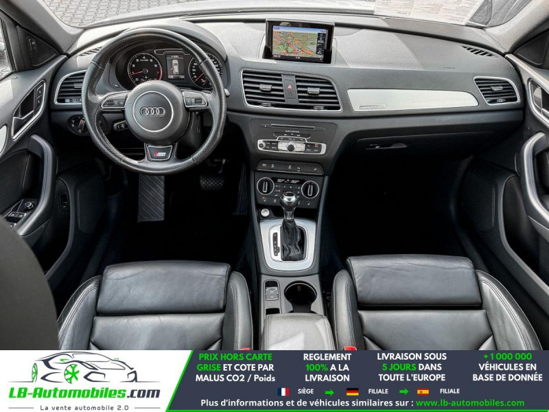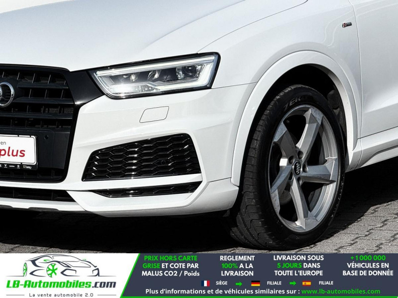 Référence : 1173706 Vos Avantages chez LB-AUTOMOBILES.com / Prix affiché TTC Livré hors carte grise / Livraison sous 10 jours dans toute la France hors 31 / Pas d?avance de frais paiement du véhicule 100% à la livraison par virement. Audi Q3 Neuf remisée, Audi Q3 Occasion Toulouse Beaupuy 31850, Audi Q3 Véhicule sorti de réseau collaborateur, Audi Q3 import, Audi Q3 importateur, Audi Q3 Livraison possible dans toute la France sous 5 jours, Audi Q3, Audi Q3 Location Option Achat, Audi Q3 LLD, Audi Q3 Longue Durée, Audi Q3 TVA récupérable. Possibilité d'extension de garantie 12, 24,36 mois, Pour tout autres voitures import neufs ou occasions collaborateur fortement remisée, Mandataire Audi, Mandataire BMW, Mandataire Volkswagen, Mandataire Mercedes, Mandataire Peugeot Espagne, Mandataire Renault Espagne, Porsche import, Mandataire Citroën Espagne, Mandataire Seat Espagne, n'hésitez pas à nous contacter. « Sous réserve de vente préalable et erreur de saisie » Principaux équipements : - 4x4 - ABS - Accoudoir - Antidémarrage - Assistance de démarrage en côte - Assistant d'angle mort - Assistant feux de route - Attache remorque pivotante - Avertisseur de franchissement de ligne - Bluetooth - Boîte de vitesses robotisée - Capteur de lumière - Capteur de pluie - Carnet d'entretien - Commande vocale - Contrôle de la pression des pneus - Direction assistée - ESP - Fermeture centralisée - Feux de jour LED - Galerie de toit - Garantie - GPS - Hayon électrique - Isofix - Jantes alliage - Kit mains libres - Ordinateur de bord - Pack sport - Phares LED - Point Isofix siège passager - Radio DAB - Réglage électrique des sièges - Régulateur de vitesse - Rétroviseur extérieur électrique - Rétroviseur intérieur anti-éblouissement automatique - Rétroviseurs extérieurs rabattables électriquement - Roue galette - Sièges chauffants - Sièges sport - Support lombaire - Suspension sport - Système antipatinage - Système de nettoyage des phares - Système de sonorisation - Système Stop & Start - Tuner/radio - Véhicule non-fumeur - Verrouillage centralisé sans clé - Vitres électriques - Vitres teintées - Volant en cuir - Volant multifonction