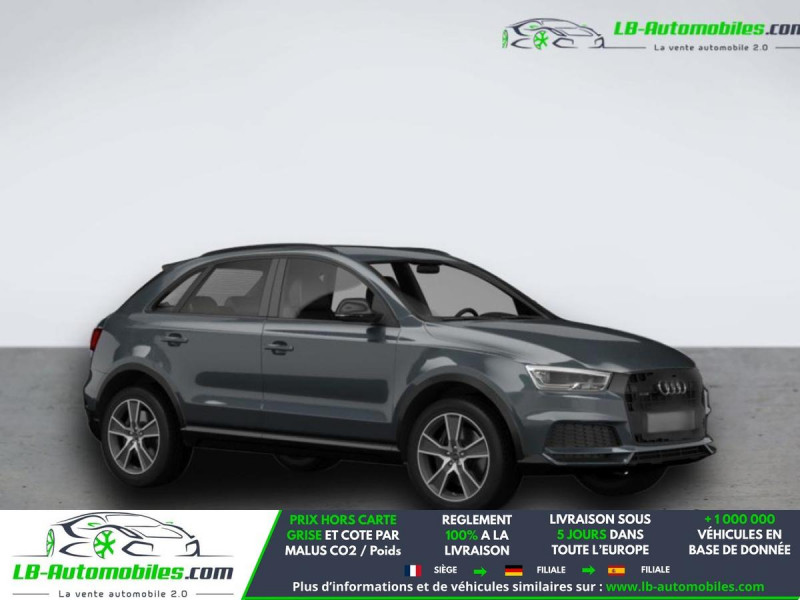 Référence : 1173656 Vos Avantages chez LB-AUTOMOBILES.com / Prix affiché TTC Livré hors carte grise / Livraison sous 10 jours dans toute la France hors 31 / Pas d?avance de frais paiement du véhicule 100% à la livraison par virement. Audi Q3 Neuf remisée, Audi Q3 Occasion Toulouse Beaupuy 31850, Audi Q3 Véhicule sorti de réseau collaborateur, Audi Q3 import, Audi Q3 importateur, Audi Q3 Livraison possible dans toute la France sous 5 jours, Audi Q3, Audi Q3 Location Option Achat, Audi Q3 LLD, Audi Q3 Longue Durée, Audi Q3 TVA récupérable. Possibilité d'extension de garantie 12, 24,36 mois, Pour tout autres voitures import neufs ou occasions collaborateur fortement remisée, Mandataire Audi, Mandataire BMW, Mandataire Volkswagen, Mandataire Mercedes, Mandataire Peugeot Espagne, Mandataire Renault Espagne, Porsche import, Mandataire Citroën Espagne, Mandataire Seat Espagne, n'hésitez pas à nous contacter. « Sous réserve de vente préalable et erreur de saisie » Principaux équipements : - 4x4 - ABS - Accoudoir - Antidémarrage - Assistance au freinage d'urgence - Assistance de démarrage en côte - Attache remorque fixe - Bluetooth - Capteur de lumière - Capteur de pluie - Carnet d'entretien - Commande vocale - Contrôle de la pression des pneus - Diesel avec filtre à particules - Direction assistée - ESP - Fermeture centralisée - Feux de jour LED - Galerie de toit - Garantie - Hayon électrique - Isofix - Jantes alliage - Kit mains libres - Lecteur CD - Ordinateur de bord - Pack sport - Phares bi-xénon - Régulateur de vitesse - Rétroviseur extérieur électrique - Roue de secours - Sièges chauffants - Sièges sport - Support lombaire - Suspension sport - Système antipatinage - Système d'avertissement de la distance - Système de détection de la fatigue - Système de sonorisation - Système Stop & Start - Toit ouvrant - Toit panoramique - Tuner/radio - Véhicule non-fumeur - Verrouillage centralisé sans clé - Vitres électriques - Volant en cuir - Volant multifonction