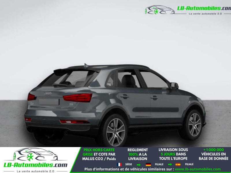 Référence : 1173657 Vos Avantages chez LB-AUTOMOBILES.com / Prix affiché TTC Livré hors carte grise / Livraison sous 10 jours dans toute la France hors 31 / Pas d?avance de frais paiement du véhicule 100% à la livraison par virement. Audi Q3 Neuf remisée, Audi Q3 Occasion Toulouse Beaupuy 31850, Audi Q3 Véhicule sorti de réseau collaborateur, Audi Q3 import, Audi Q3 importateur, Audi Q3 Livraison possible dans toute la France sous 5 jours, Audi Q3, Audi Q3 Location Option Achat, Audi Q3 LLD, Audi Q3 Longue Durée, Audi Q3 TVA récupérable. Possibilité d'extension de garantie 12, 24,36 mois, Pour tout autres voitures import neufs ou occasions collaborateur fortement remisée, Mandataire Audi, Mandataire BMW, Mandataire Volkswagen, Mandataire Mercedes, Mandataire Peugeot Espagne, Mandataire Renault Espagne, Porsche import, Mandataire Citroën Espagne, Mandataire Seat Espagne, n'hésitez pas à nous contacter. « Sous réserve de vente préalable et erreur de saisie » Principaux équipements : - 4x4 - ABS - Accoudoir - Antidémarrage - Assistance au freinage d'urgence - Assistance de démarrage en côte - Attache remorque fixe - Bluetooth - Capteur de lumière - Capteur de pluie - Carnet d'entretien - Commande vocale - Contrôle de la pression des pneus - Diesel avec filtre à particules - Direction assistée - ESP - Fermeture centralisée - Feux de jour LED - Galerie de toit - Garantie - Hayon électrique - Isofix - Jantes alliage - Kit mains libres - Lecteur CD - Ordinateur de bord - Pack sport - Phares bi-xénon - Régulateur de vitesse - Rétroviseur extérieur électrique - Roue de secours - Sièges chauffants - Sièges sport - Support lombaire - Suspension sport - Système antipatinage - Système d'avertissement de la distance - Système de détection de la fatigue - Système de sonorisation - Système Stop & Start - Toit ouvrant - Toit panoramique - Tuner/radio - Véhicule non-fumeur - Verrouillage centralisé sans clé - Vitres électriques - Volant en cuir - Volant multifonction