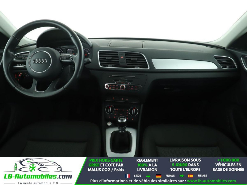 Référence : 1179625 Vos Avantages chez LB-AUTOMOBILES.com / Prix affiché TTC Livré hors carte grise / Livraison sous 10 jours dans toute la France hors 31 / Pas d?avance de frais paiement du véhicule 100% à la livraison par virement. Audi Q3 Neuf remisée, Audi Q3 Occasion Toulouse Beaupuy 31850, Audi Q3 Véhicule sorti de réseau collaborateur, Audi Q3 import, Audi Q3 importateur, Audi Q3 Livraison possible dans toute la France sous 5 jours, Audi Q3, Audi Q3 Location Option Achat, Audi Q3 LLD, Audi Q3 Longue Durée, Audi Q3 TVA récupérable. Possibilité d'extension de garantie 12, 24,36 mois, Pour tout autres voitures import neufs ou occasions collaborateur fortement remisée, Mandataire Audi, Mandataire BMW, Mandataire Volkswagen, Mandataire Mercedes, Mandataire Peugeot Espagne, Mandataire Renault Espagne, Porsche import, Mandataire Citroën Espagne, Mandataire Seat Espagne, n'hésitez pas à nous contacter. « Sous réserve de vente préalable et erreur de saisie » Principaux équipements : - ABS - Accoudoir - Antidémarrage - Assistance de démarrage en côte - Bluetooth - Capteur de lumière - Capteur de pluie - Direction assistée - ESP - Fermeture centralisée - Feux de jour LED - Galerie de toit - Garantie - GPS - Isofix - Jantes alliage - Kit de réparation d'urgence des pneus - Lecteur CD - Ordinateur de bord - Phares bi-xénon - Pneus toutes saisons - Régulateur de vitesse - Rétroviseur extérieur électrique - Rétroviseurs extérieurs rabattables électriquement - Révision complète - Sièges arrières chauffants électriques - Sièges chauffants - Système antipatinage - Système Stop & Start - Traction avant - Tuner/radio - Véhicule non-fumeur - Verrouillage centralisé sans clé - Vitres électriques - Volant en cuir - Volant multifonction
