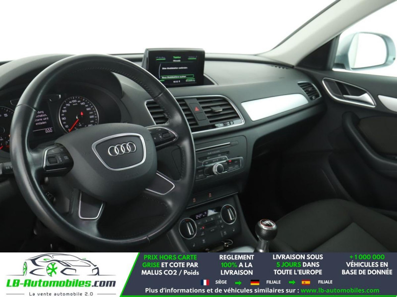 Référence : 1179626 Vos Avantages chez LB-AUTOMOBILES.com / Prix affiché TTC Livré hors carte grise / Livraison sous 10 jours dans toute la France hors 31 / Pas d?avance de frais paiement du véhicule 100% à la livraison par virement. Audi Q3 Neuf remisée, Audi Q3 Occasion Toulouse Beaupuy 31850, Audi Q3 Véhicule sorti de réseau collaborateur, Audi Q3 import, Audi Q3 importateur, Audi Q3 Livraison possible dans toute la France sous 5 jours, Audi Q3, Audi Q3 Location Option Achat, Audi Q3 LLD, Audi Q3 Longue Durée, Audi Q3 TVA récupérable. Possibilité d'extension de garantie 12, 24,36 mois, Pour tout autres voitures import neufs ou occasions collaborateur fortement remisée, Mandataire Audi, Mandataire BMW, Mandataire Volkswagen, Mandataire Mercedes, Mandataire Peugeot Espagne, Mandataire Renault Espagne, Porsche import, Mandataire Citroën Espagne, Mandataire Seat Espagne, n'hésitez pas à nous contacter. « Sous réserve de vente préalable et erreur de saisie » Principaux équipements : - ABS - Accoudoir - Antidémarrage - Bluetooth - Capteur de lumière - Capteur de pluie - Direction assistée - ESP - Fermeture centralisée - Feux de jour LED - Galerie de toit - Garantie - Isofix - Jantes alliage - Kit de réparation d'urgence des pneus - Kit mains libres - Lecteur CD - Ordinateur de bord - Phares bi-xénon - Pneus toutes saisons - Point Isofix siège passager - Régulateur de vitesse - Rétroviseur extérieur électrique - Révision complète - Sièges chauffants - Suspension sport - Système antipatinage - Système Stop & Start - Traction avant - Tuner/radio - Véhicule non-fumeur - Verrouillage centralisé sans clé - Vitres électriques - Volant en cuir - Volant multifonction